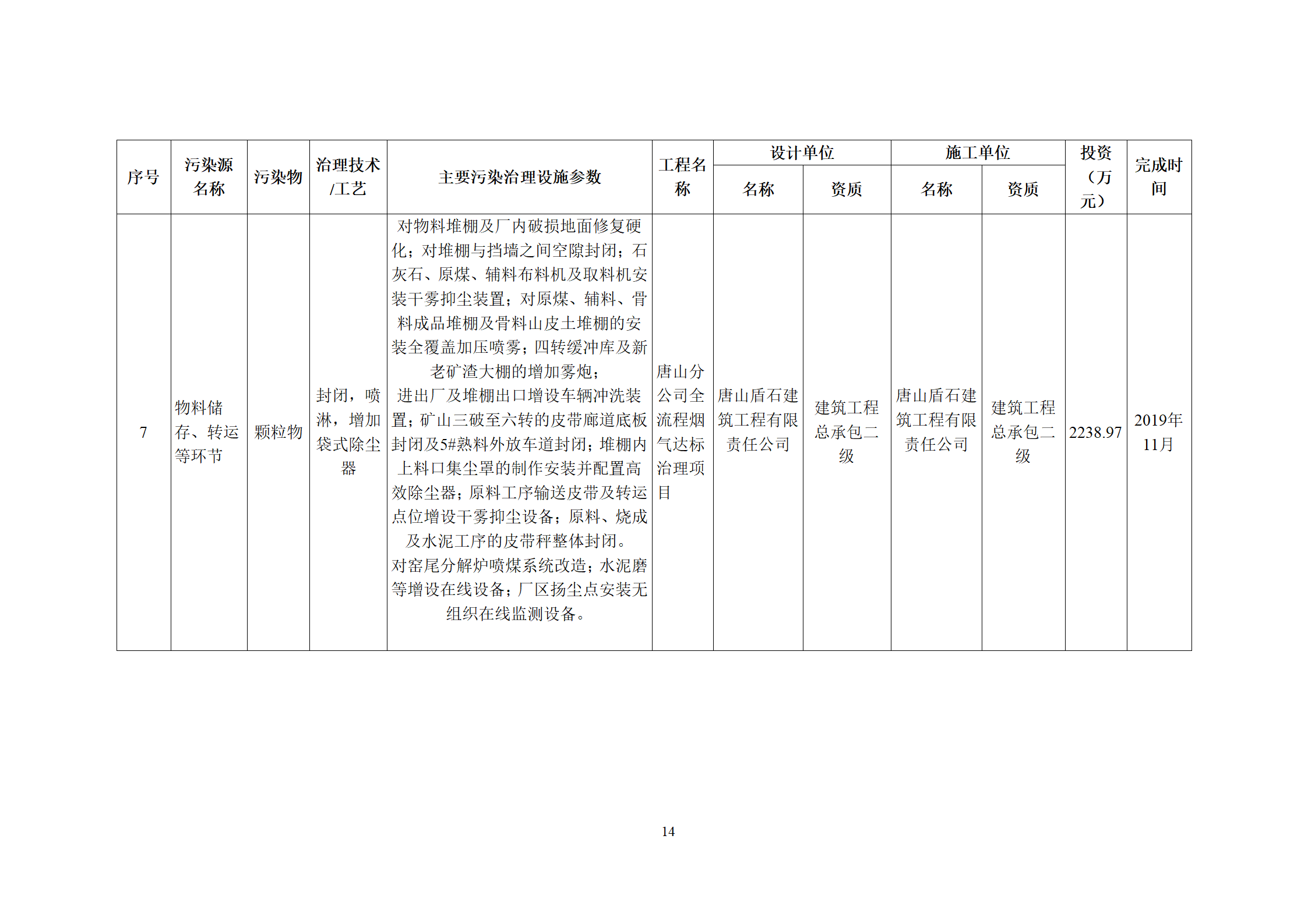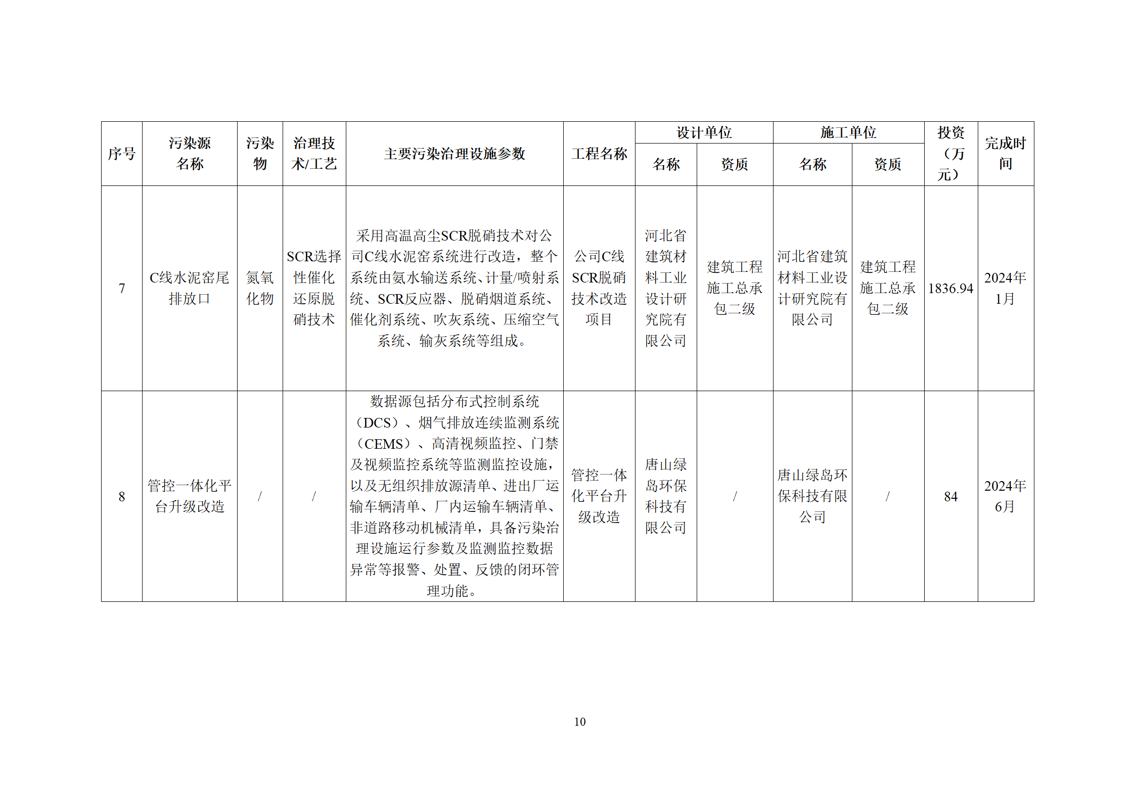 唐山冀東水泥股份有限公司唐山分公司超低排放改造和評估監測進展情況公示內容