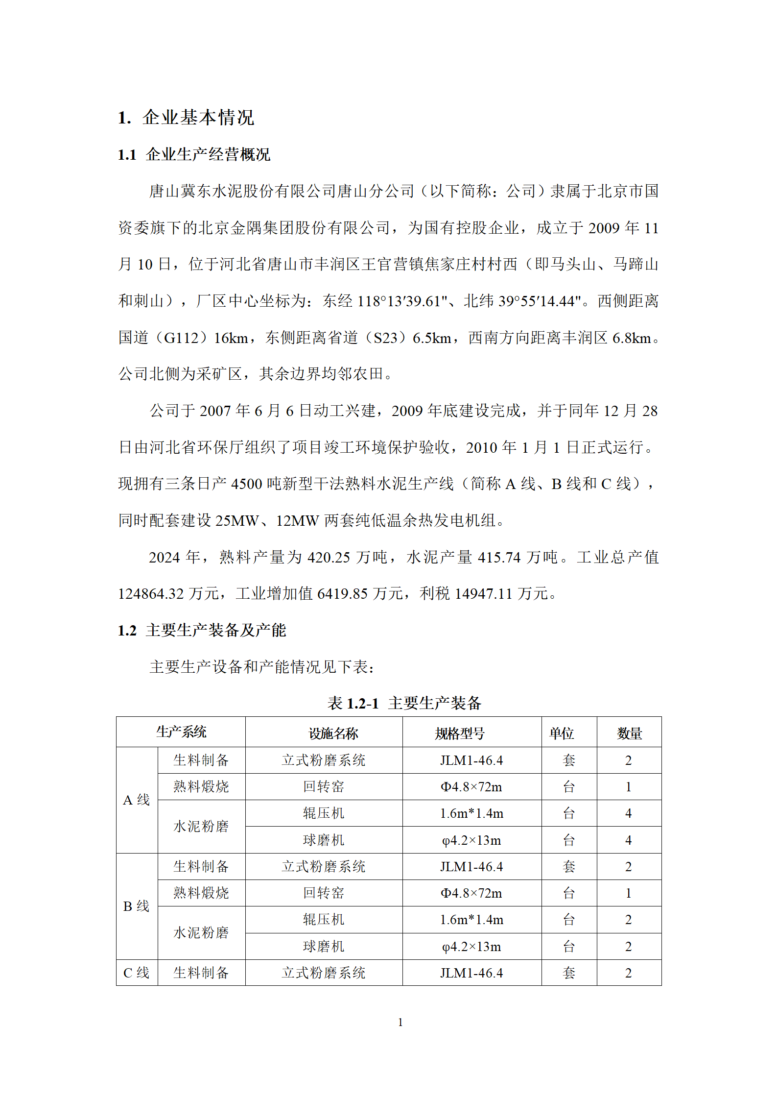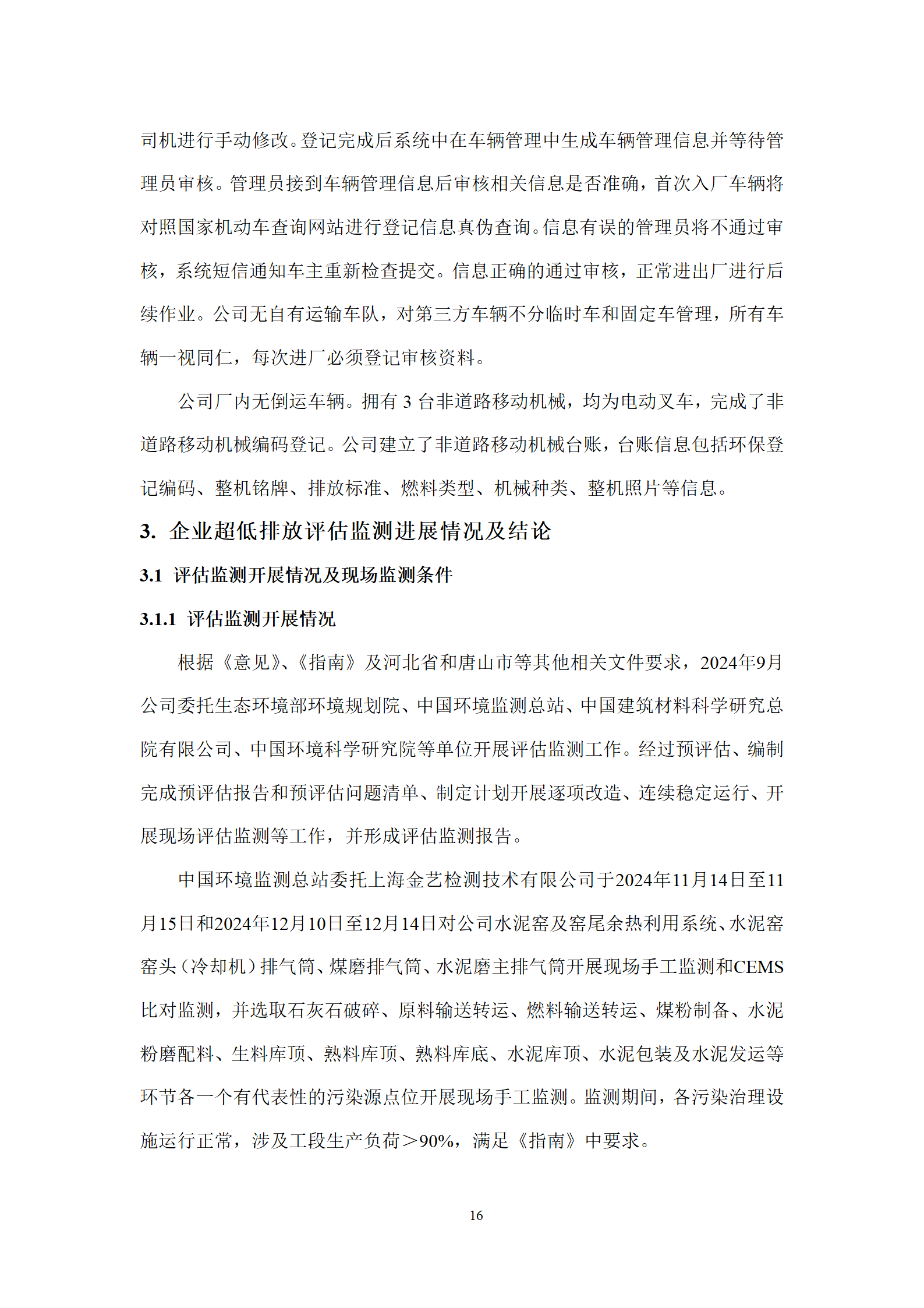 唐山冀東水泥股份有限公司唐山分公司超低排放改造和評估監測進展情況公示內容-世界杯直播在线