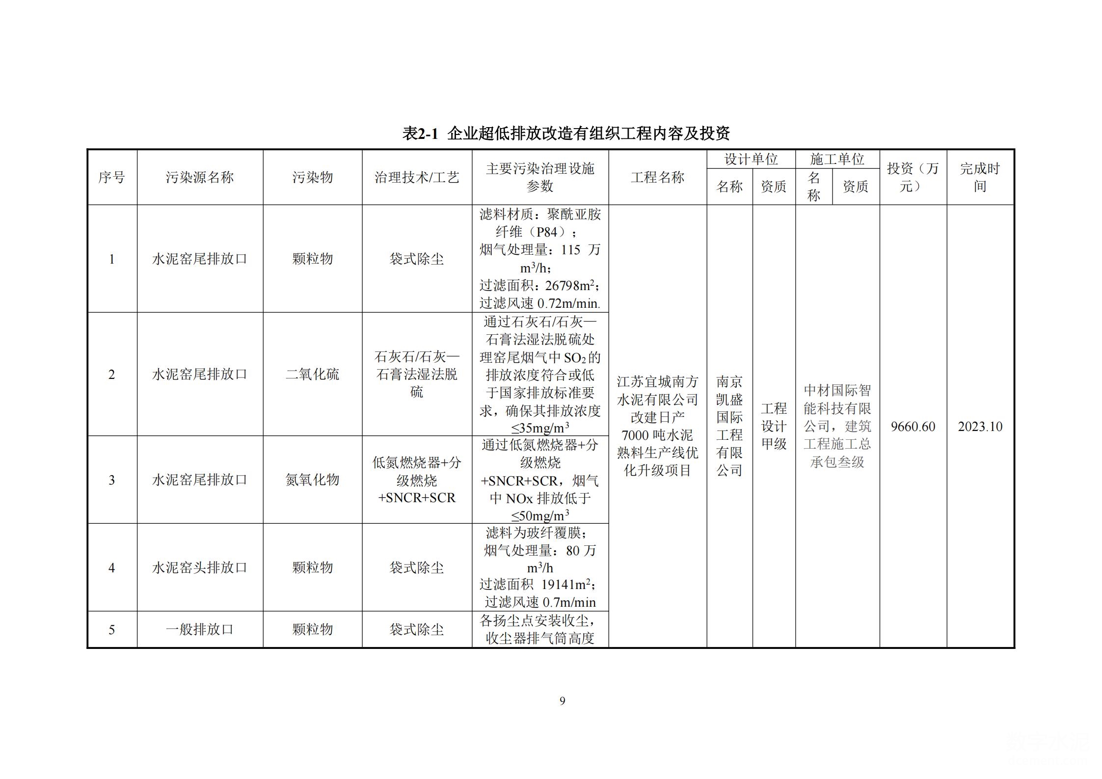 江蘇宜城南方水泥有限公司超低排放改造和評估監測進展情況公示內容