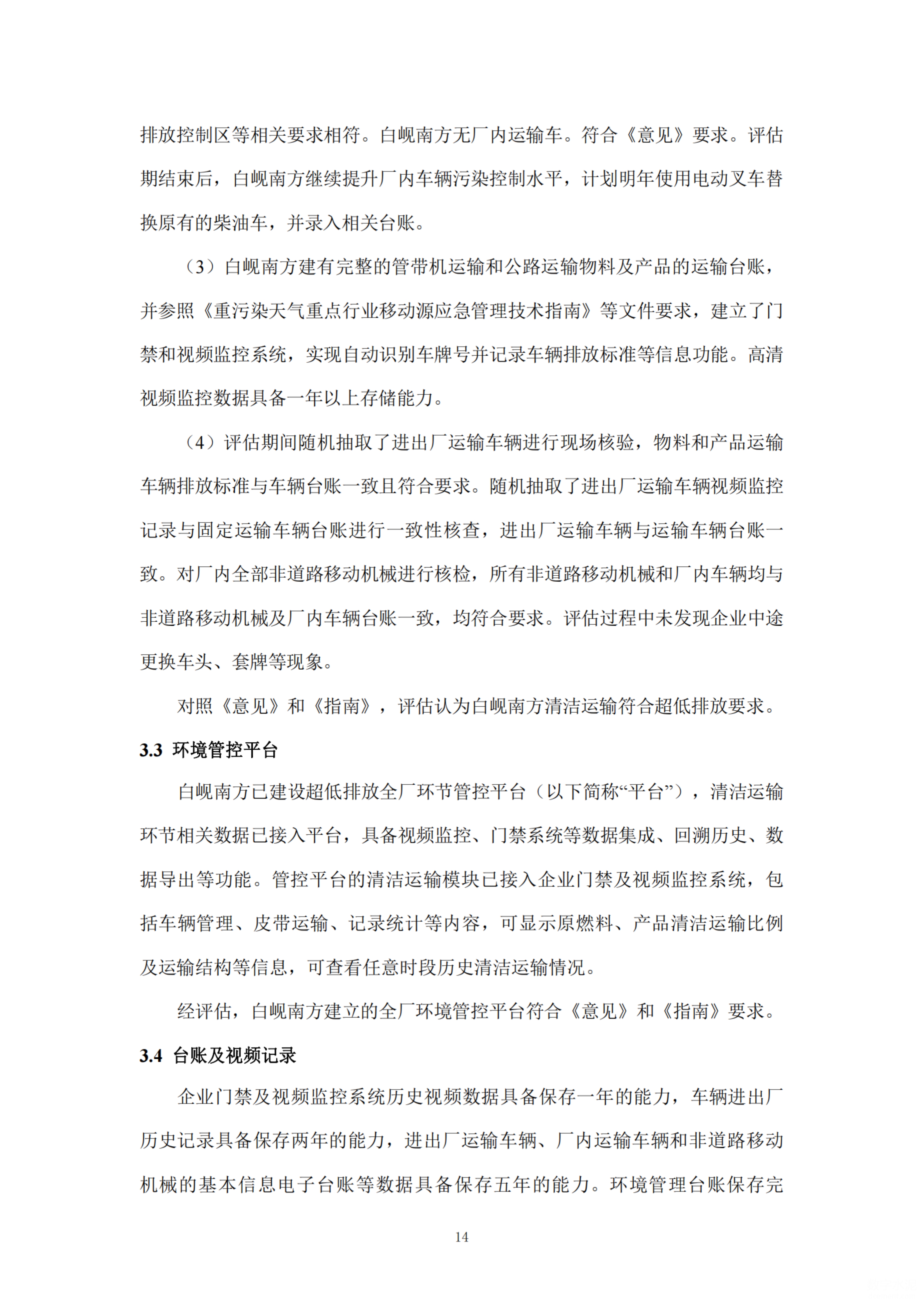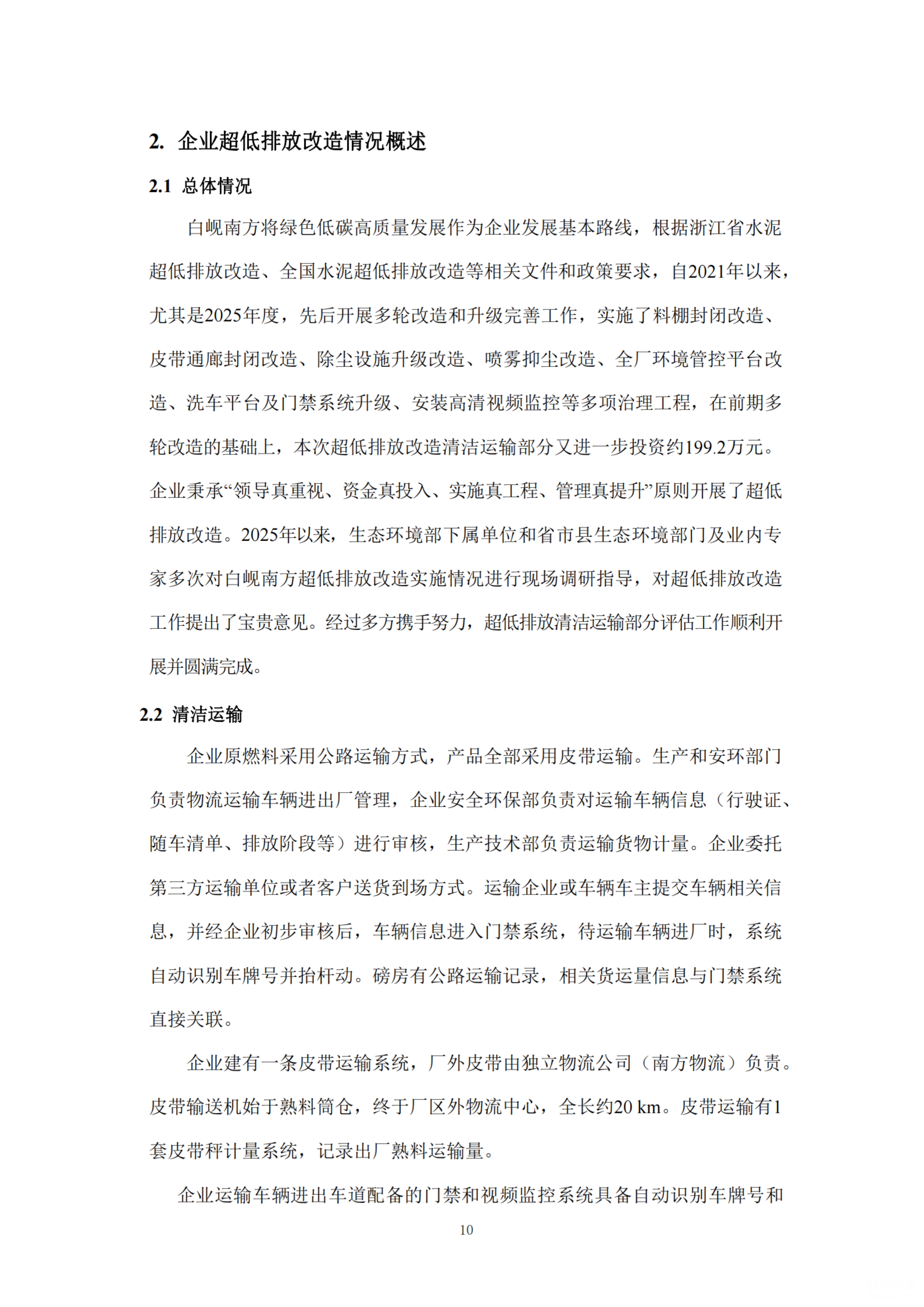 湖州白峴南方水泥有限公司清潔運輸部分超低排放改造和評估監測進展情況公示內容