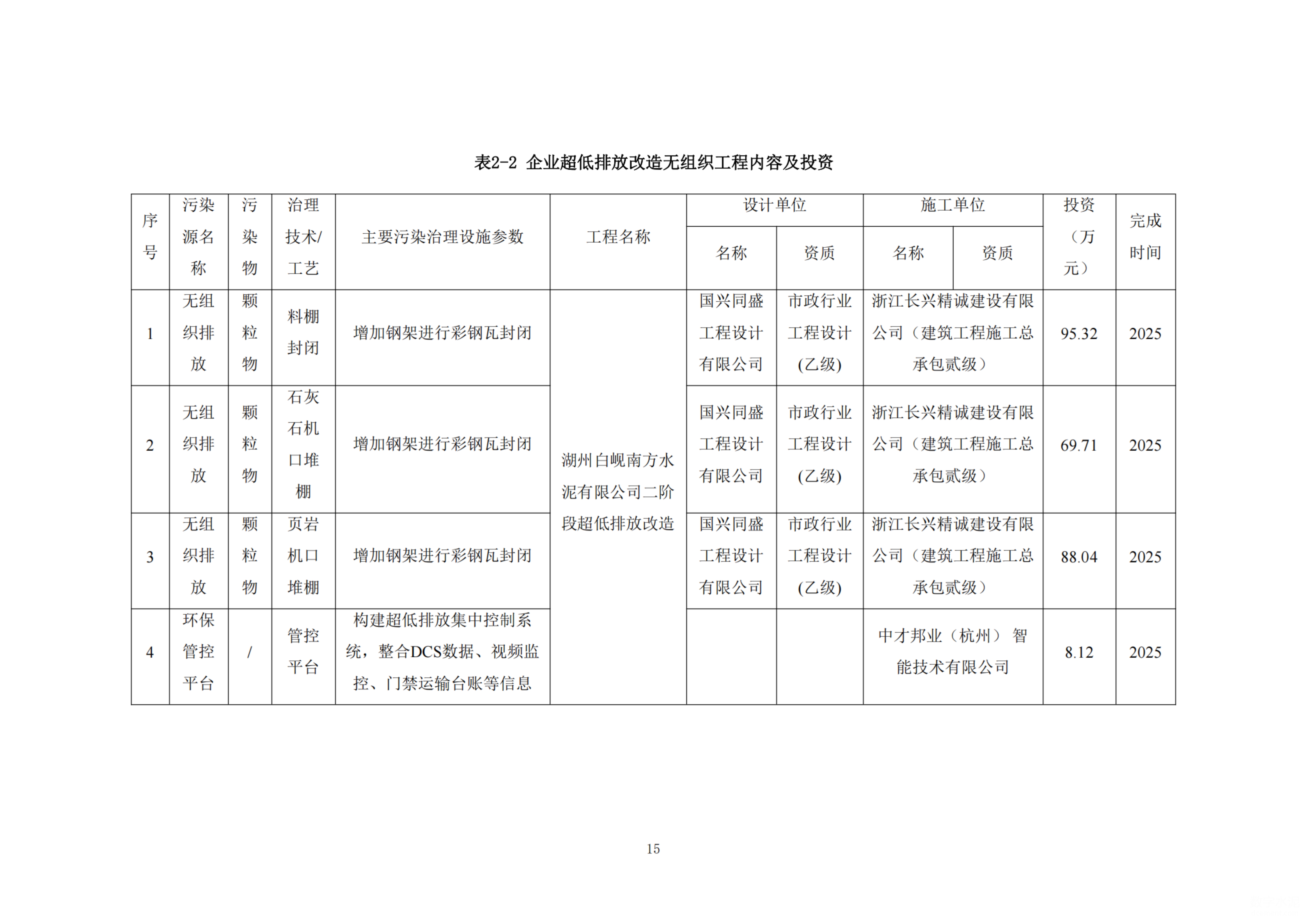 湖州白峴南方水泥有限公司有組織、無組織部分超低排放改造評估監測進展情況公示內容