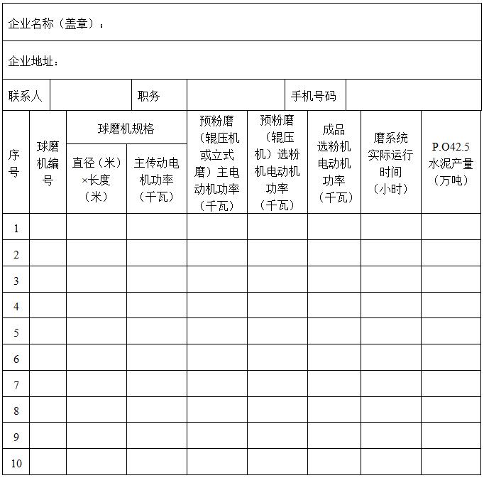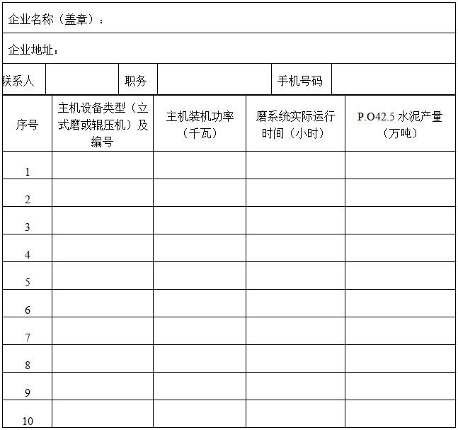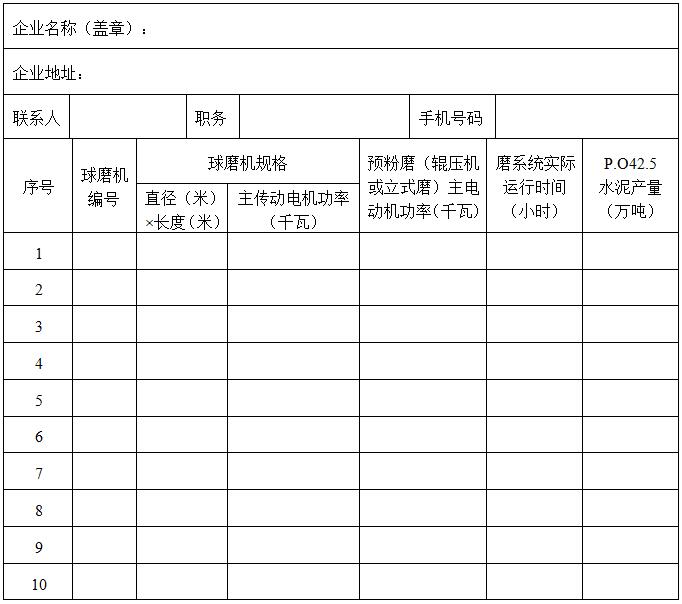 5.“磨係統實際運行時間”為磨係統2017年全年生產P.O42.5水泥的實際運行時間(多數企業統計為磨入料時間);“P.O42.5水泥產量”為水泥粉磨站2017年全年生產P.O42.5水泥的實際產量。