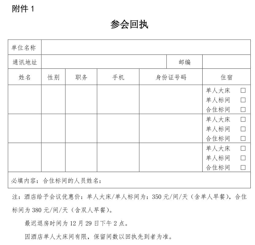 敬請各單位參會(hui) 代表認真閱讀附件2會(hui) 議須知的全部內(nei) 容,並於(yu) 2021年12月22日前將附件1參會(hui) 回執以郵件或微信方式返回。
