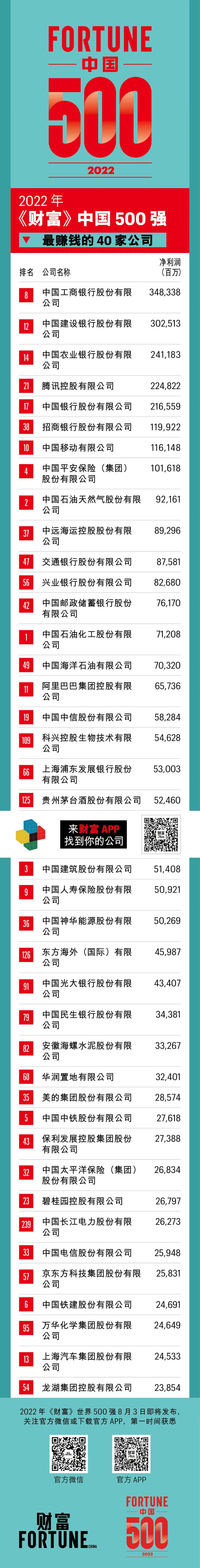 2022年7月12日,財富Plus APP發布了2022年的《財富》中國500強排行榜,考量了全球範圍內(nei) 最大的中國上市企業(ye) 在過去一年的業(ye) 績和成就。該榜單由《財富》(中文版)與(yu) 中金財富合作編製。