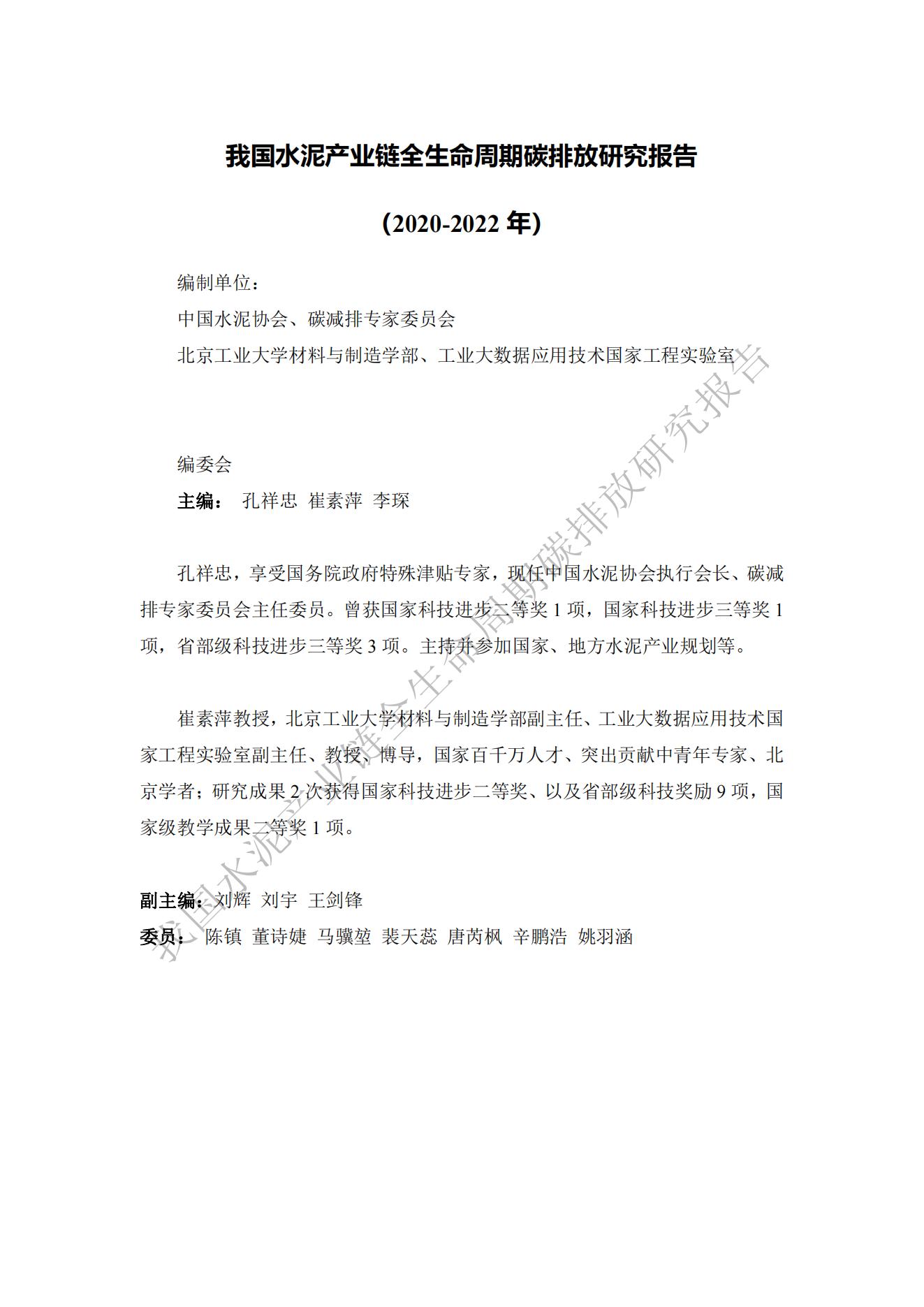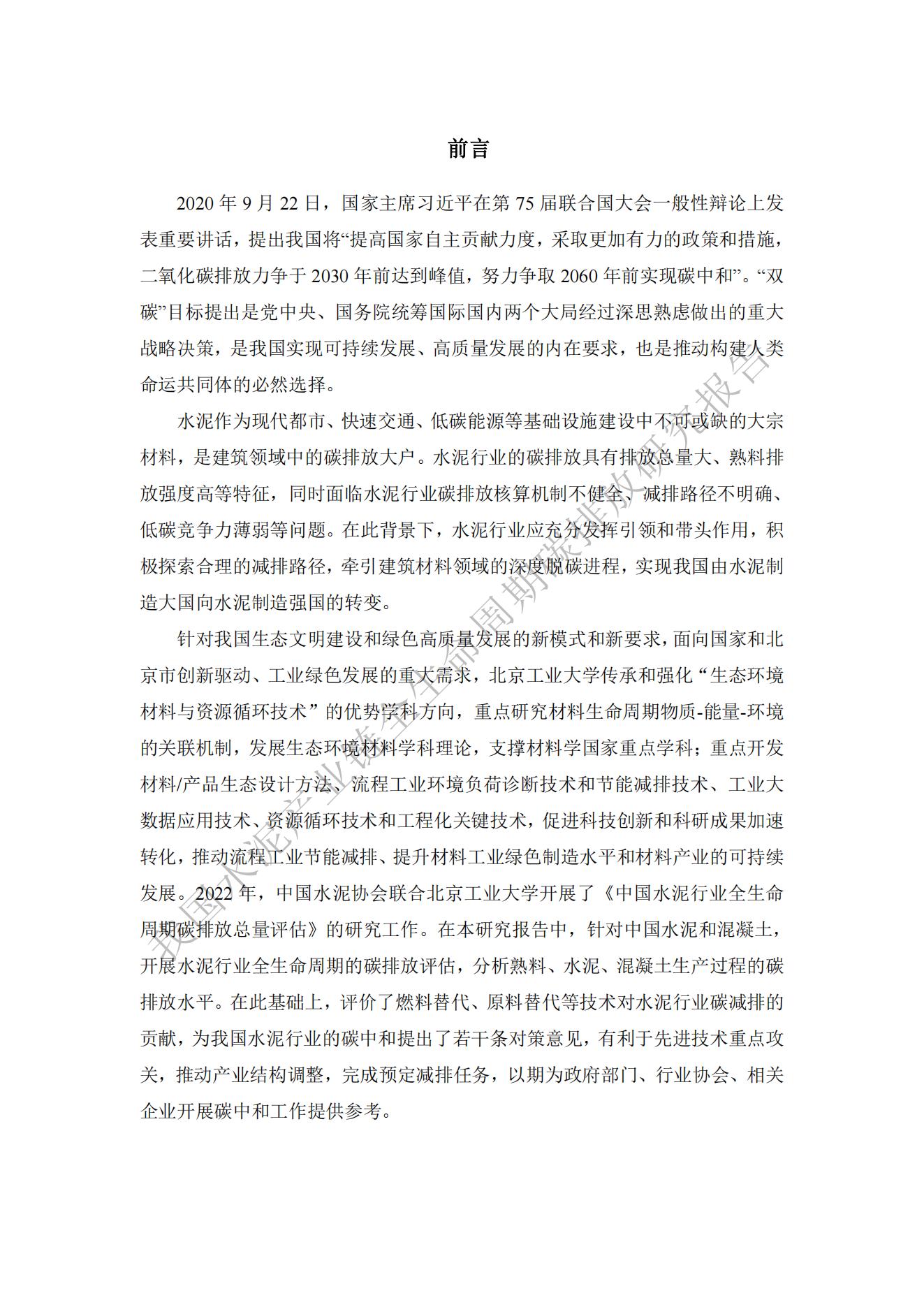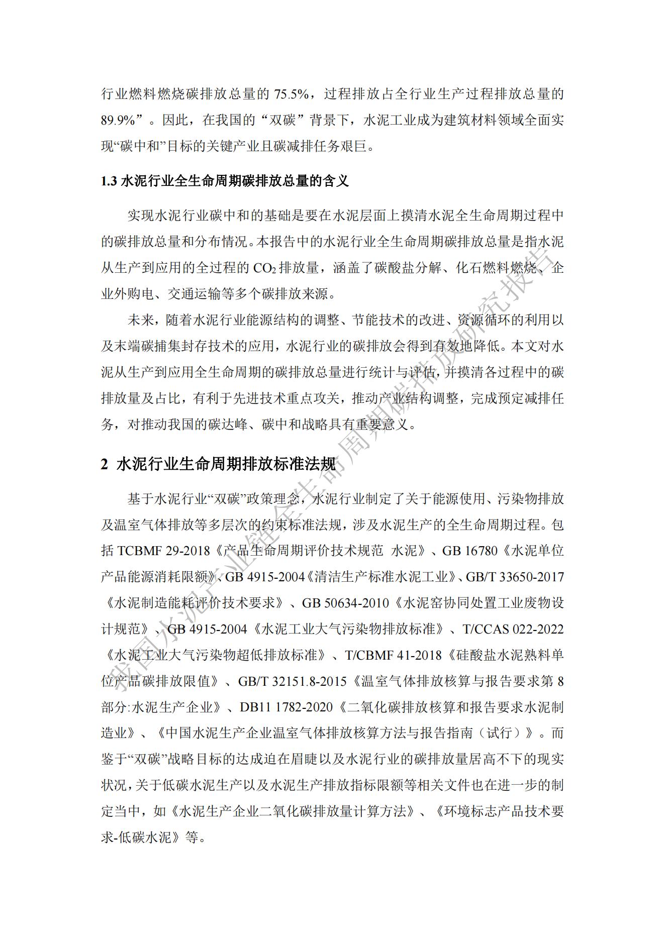 【研究報告】我國水泥行業全生命周期碳排放總量評估研究報告-世界杯直播在线