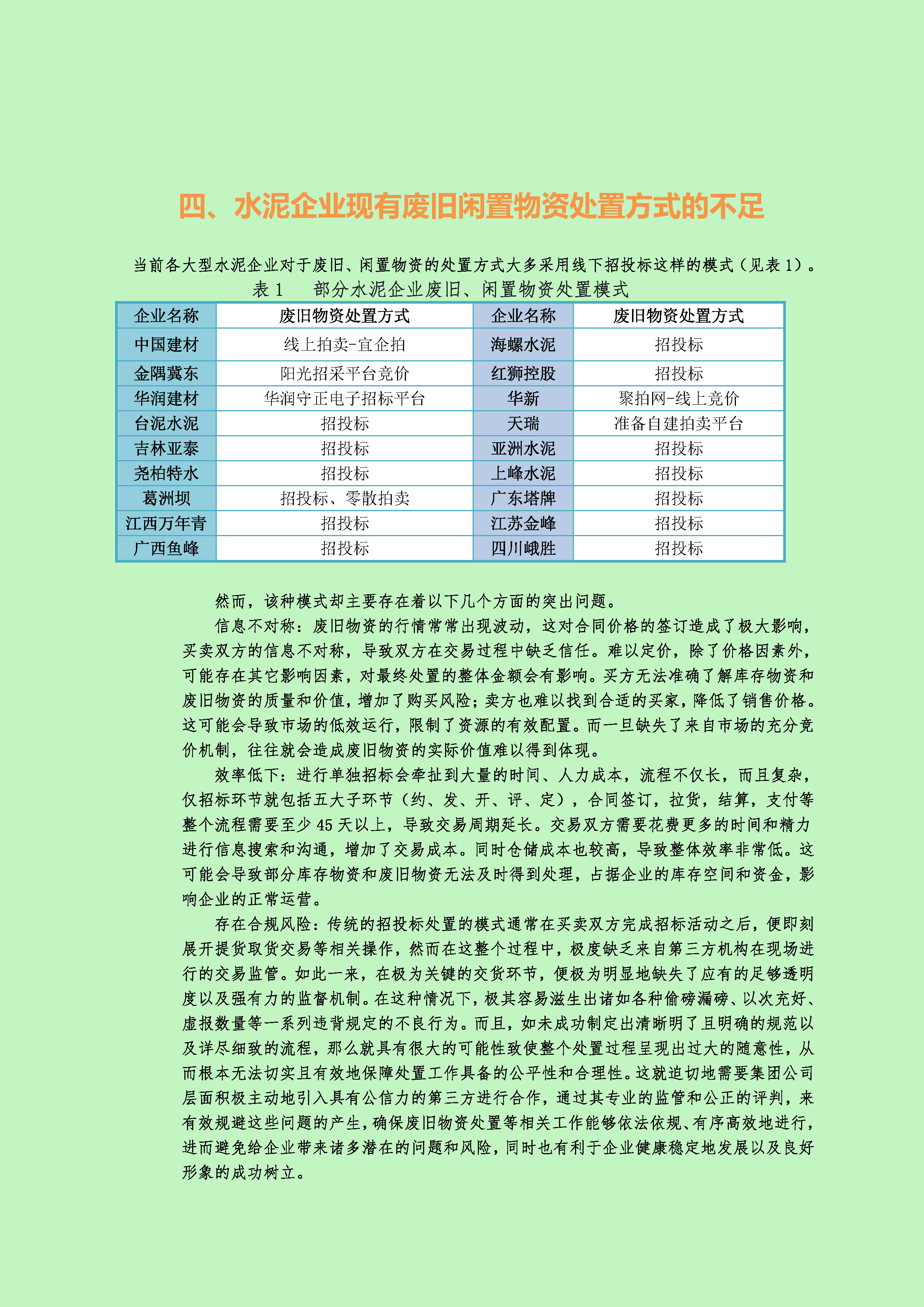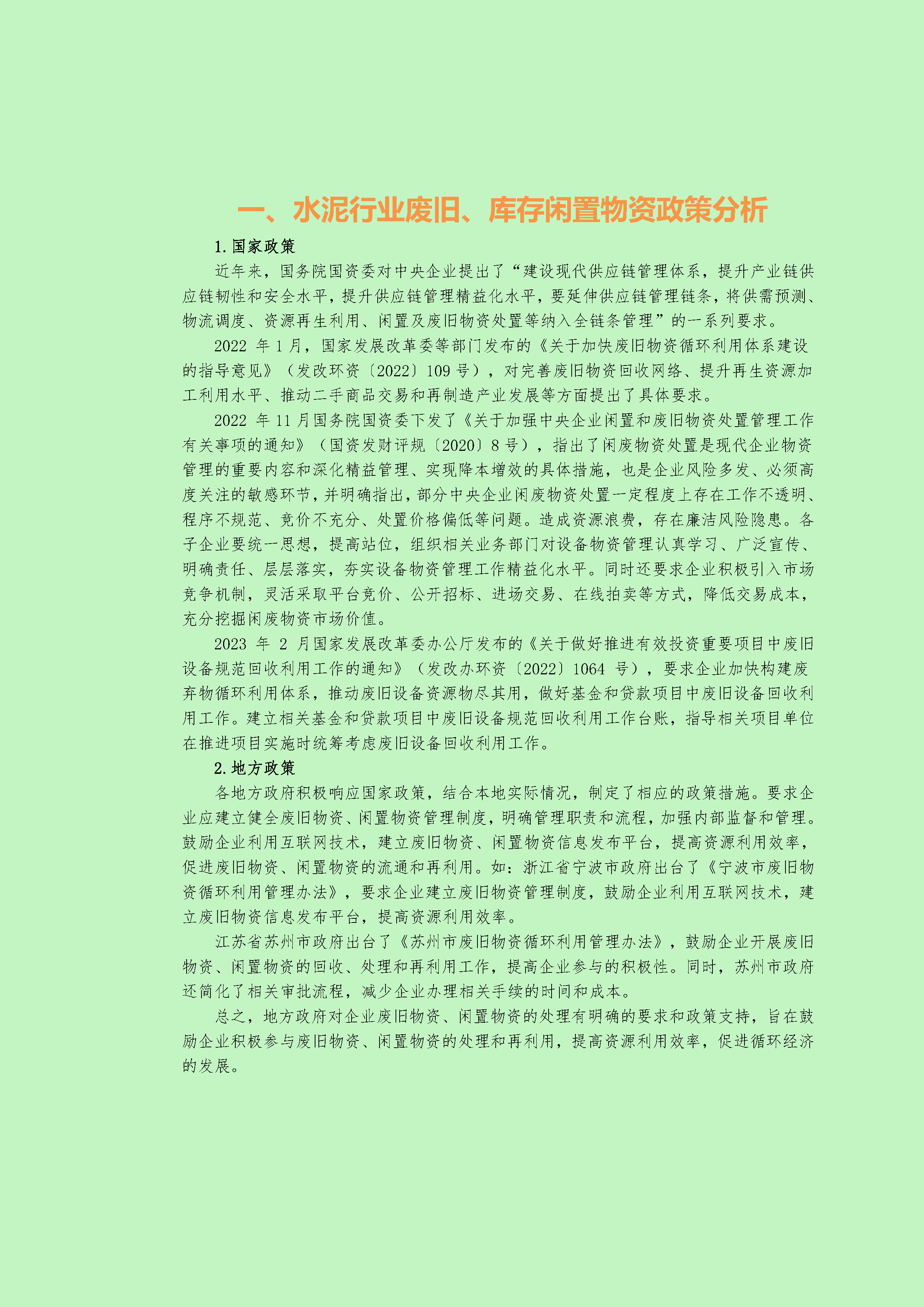 水泥行業廢舊、庫存閑置物資線上處置調研報告