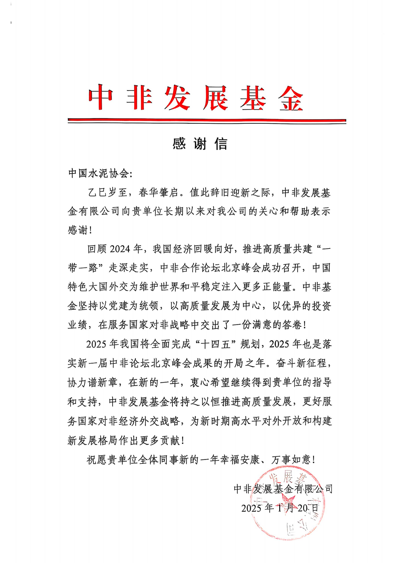中非發展基金感謝信-世界杯直播在线