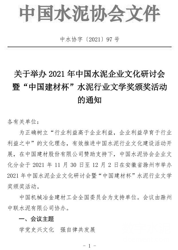 關於舉辦2021年中國水泥企業文化研討會暨“中國建材杯”水泥行業文學獎頒獎活動的通知