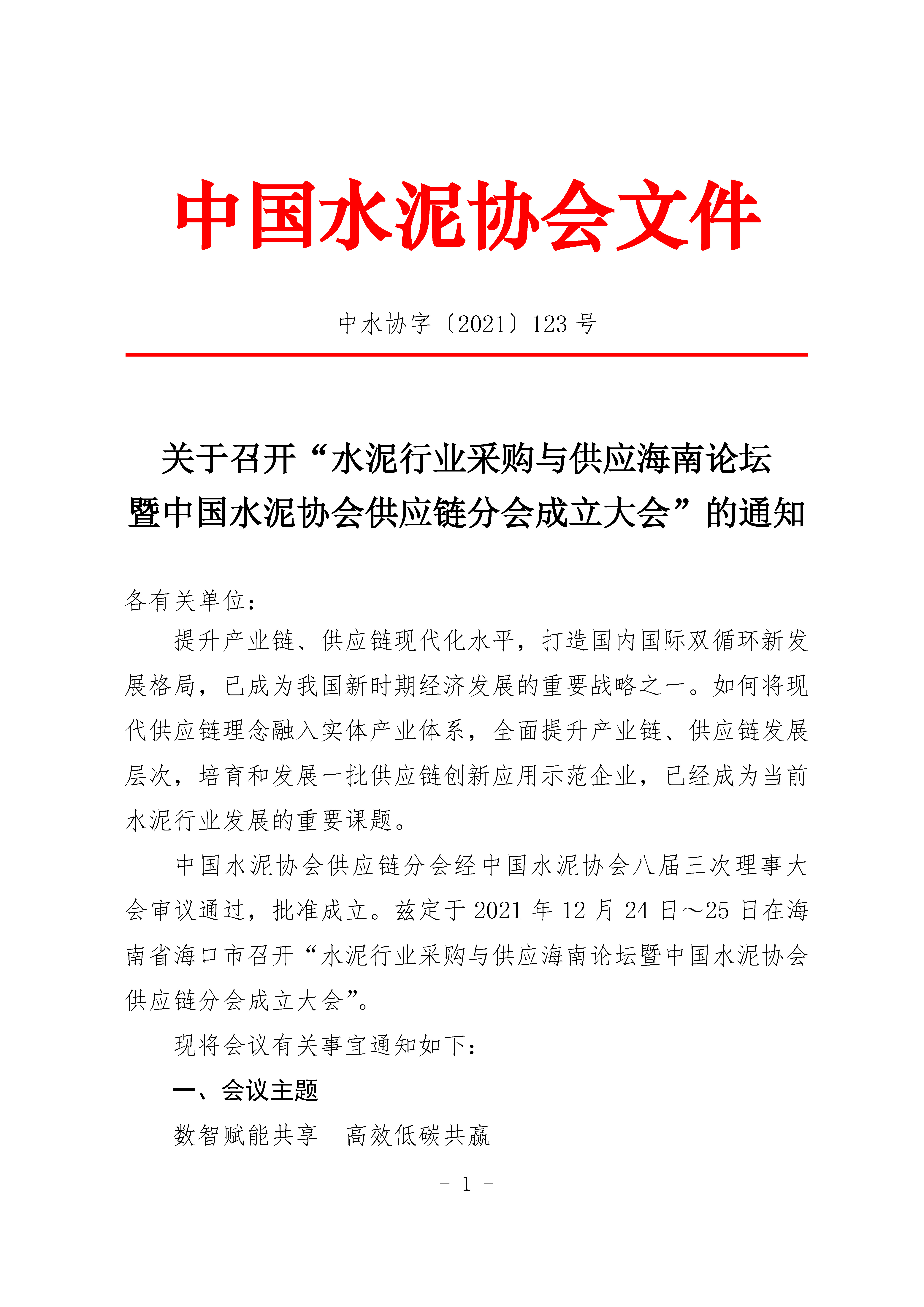 關於召開“水泥行業采購與供應海南論壇暨世界杯直播在线供應鏈分會成立大會”的通知