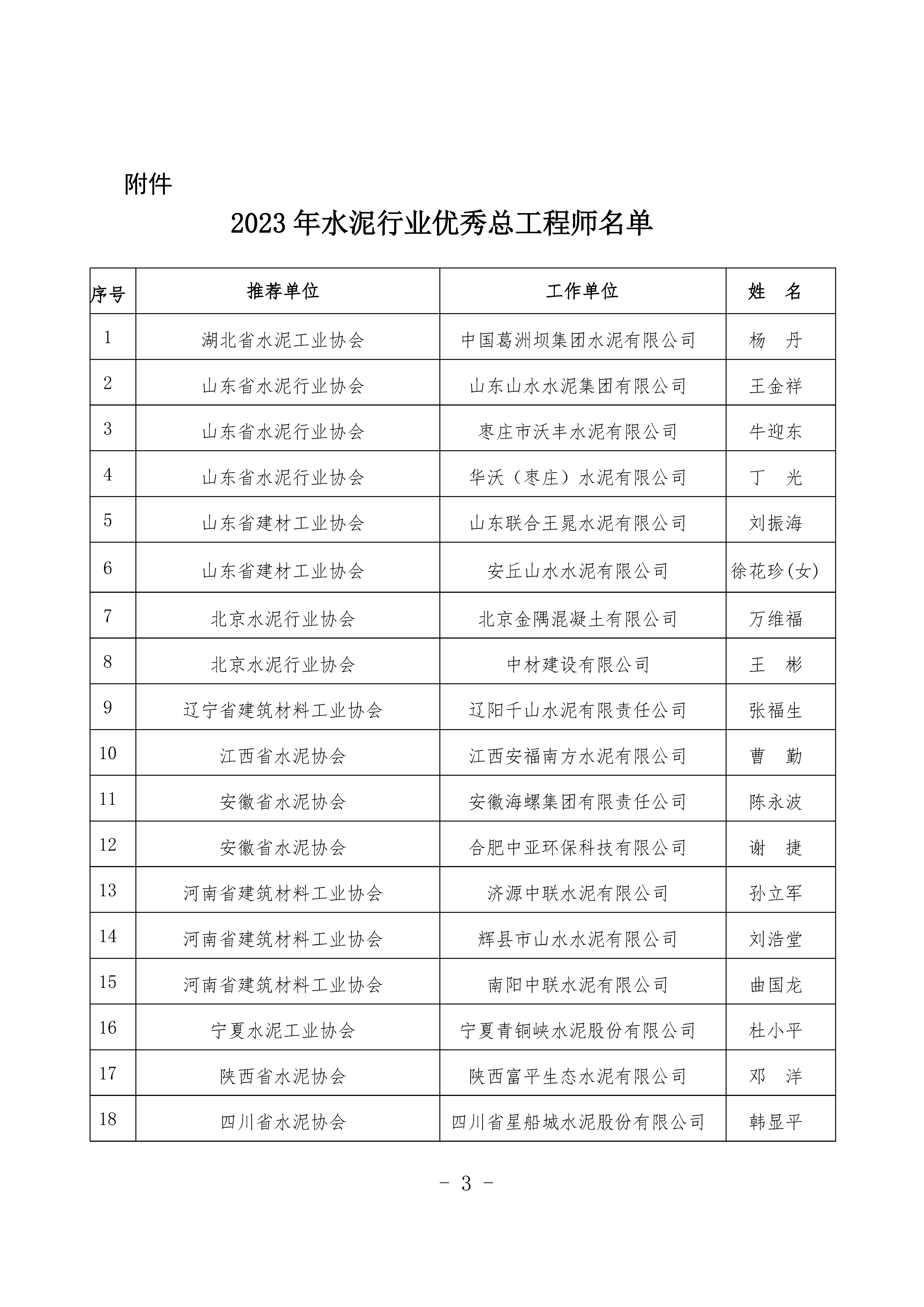 關於授予楊丹、王金祥等34人“2023年水泥行業優秀總工程師”稱號的決定-世界杯直播在线