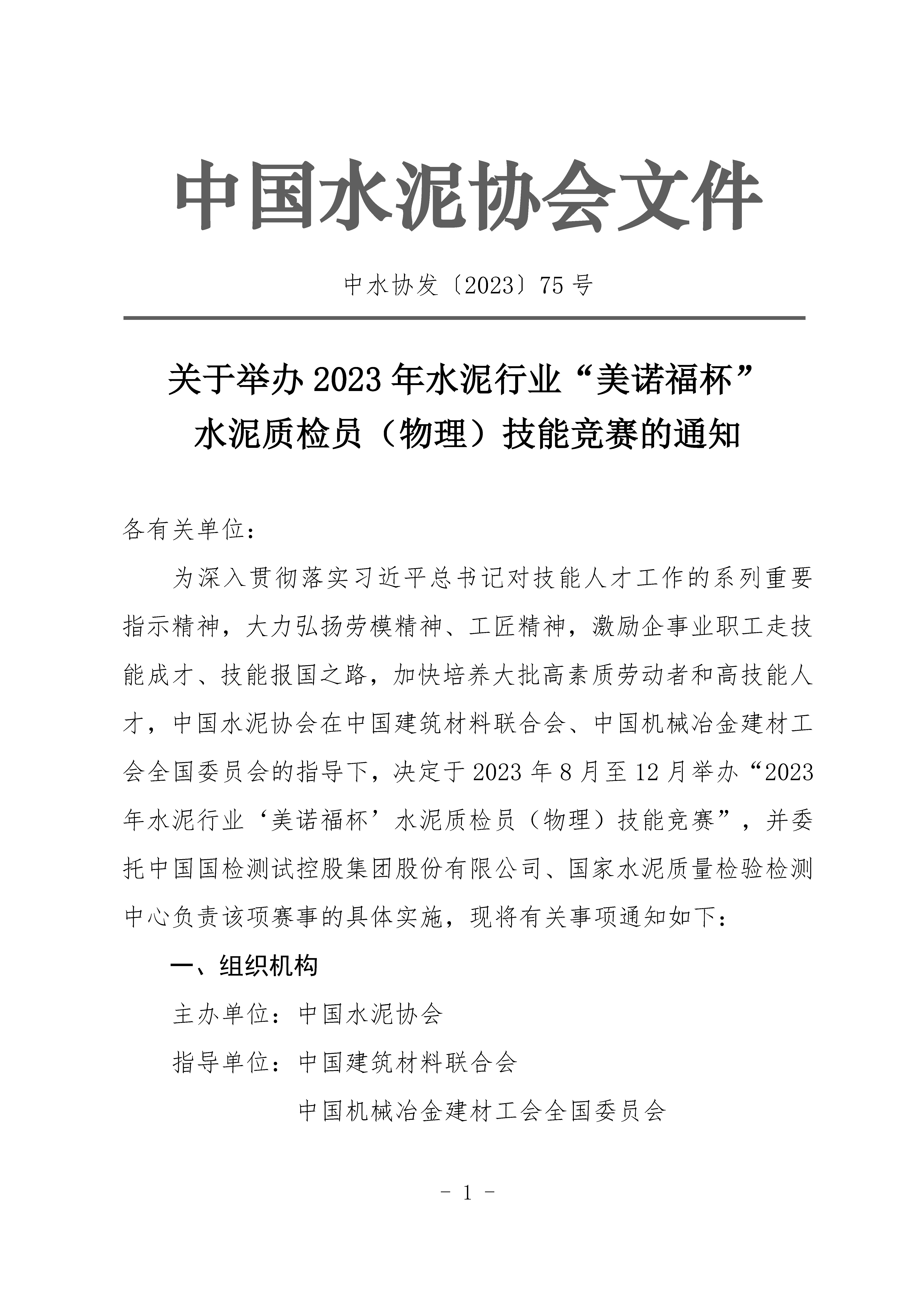 號關於舉辦2023年水泥行業“美諾福杯”水泥質檢員(物理)技能競賽的通知