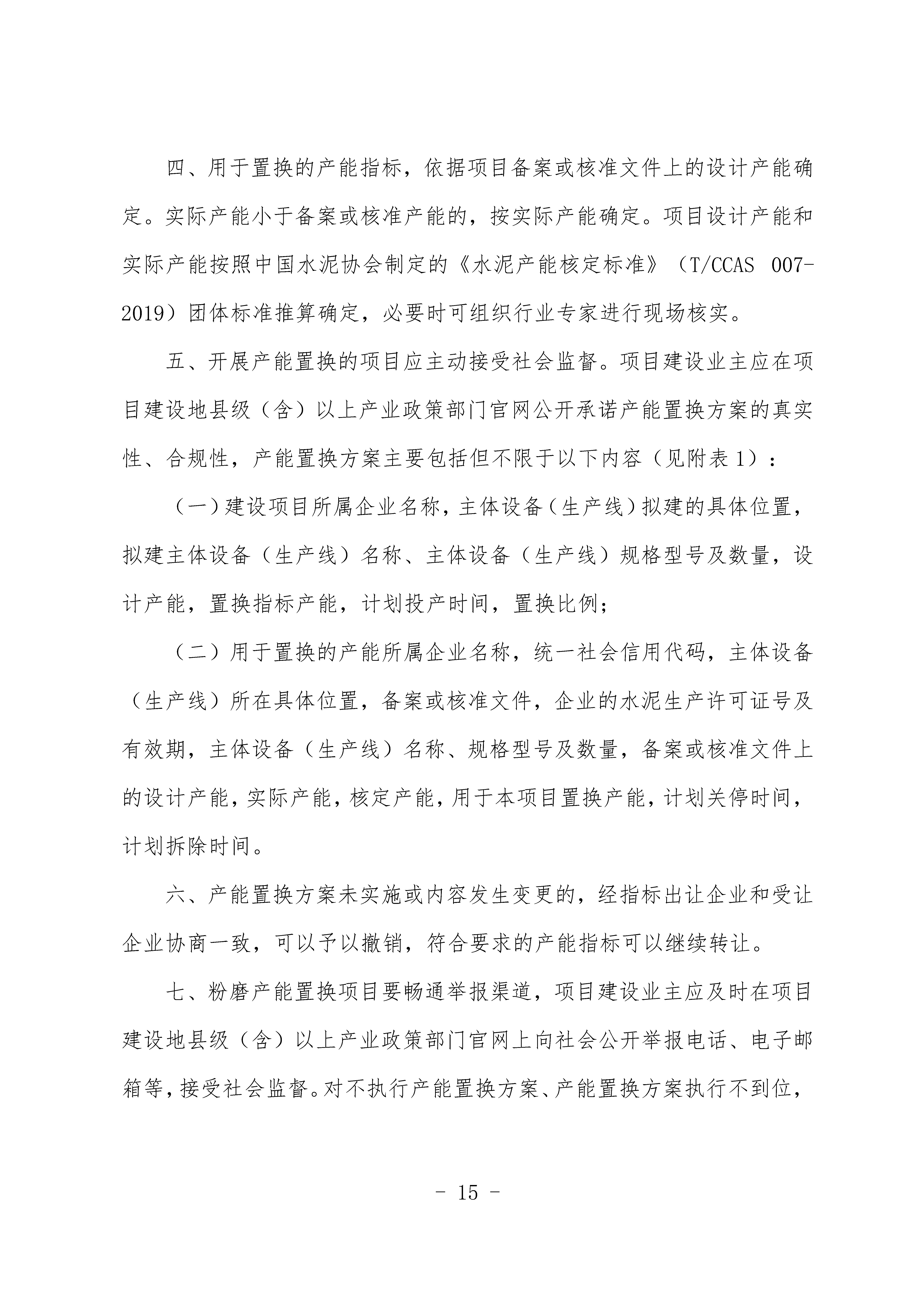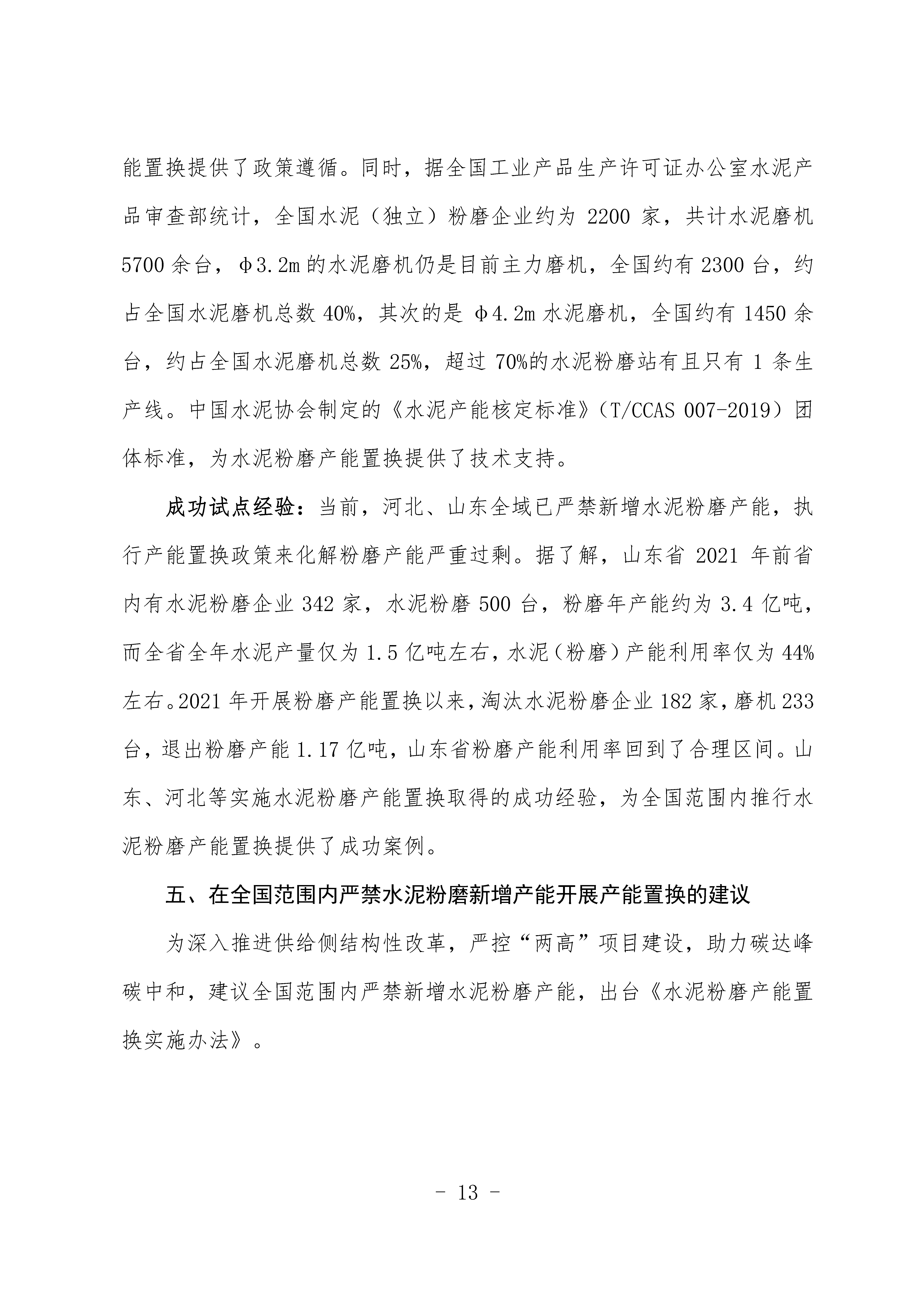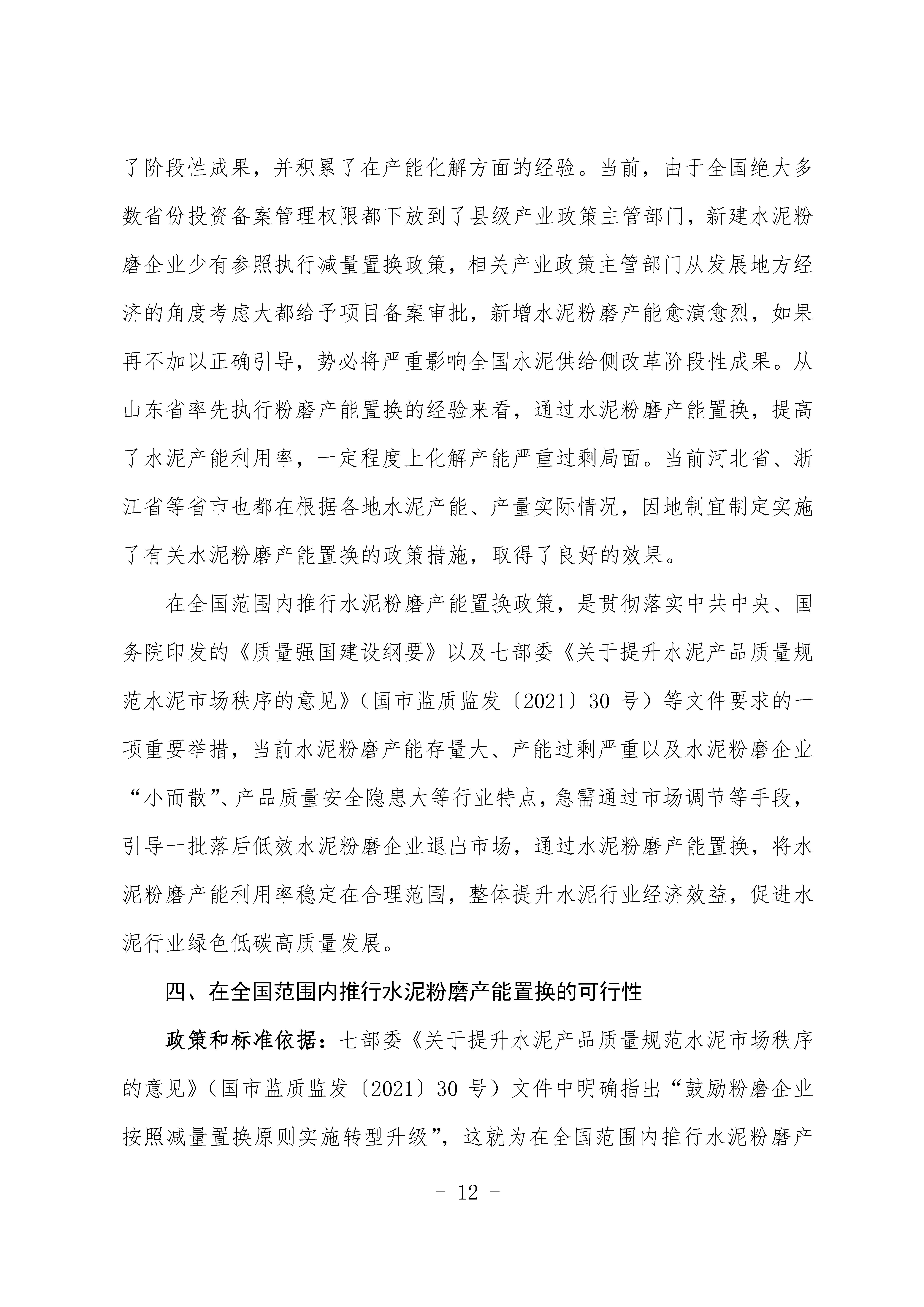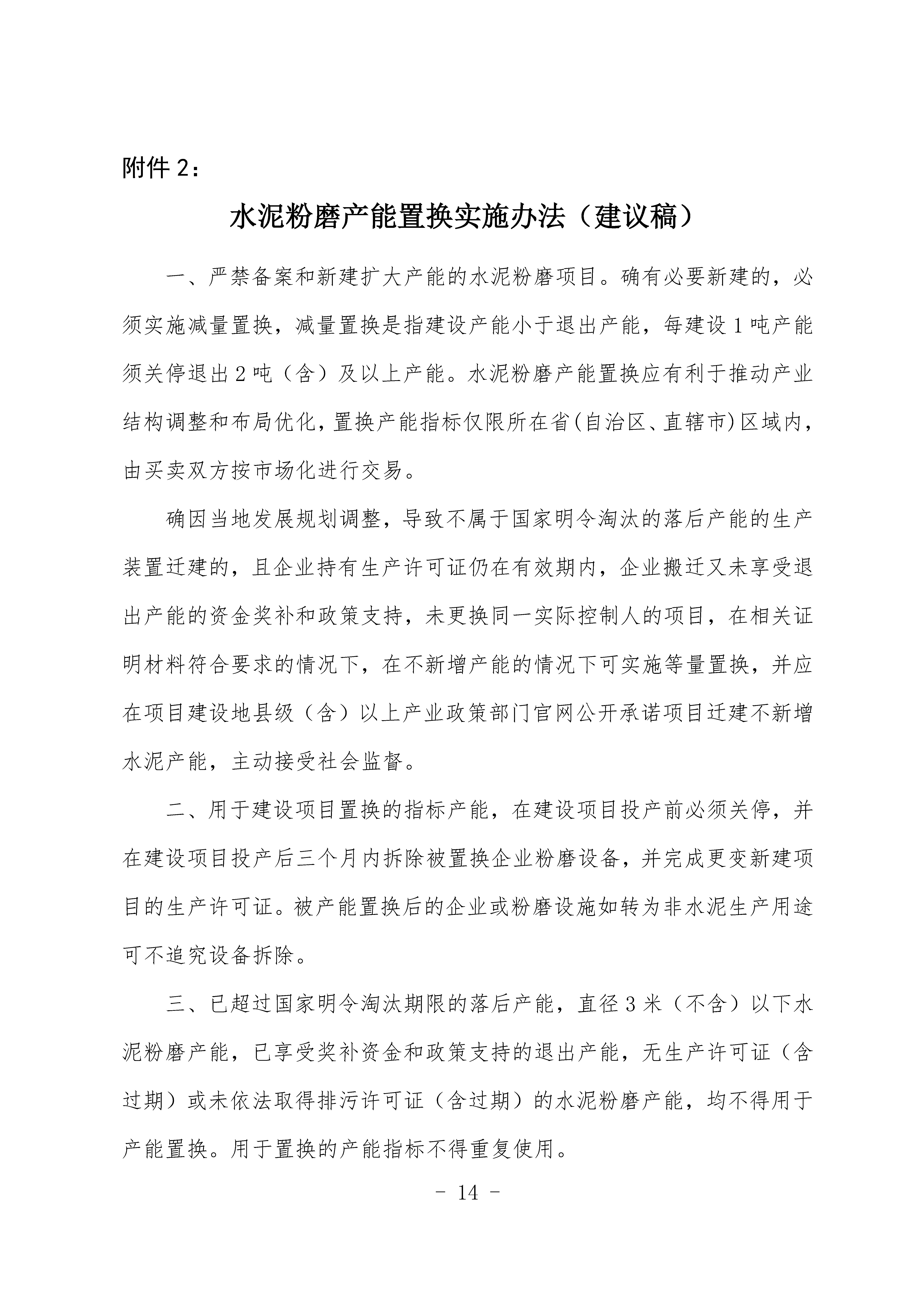 關於征求《水泥粉磨企業全麵執行 產能置換政策的建議》的函