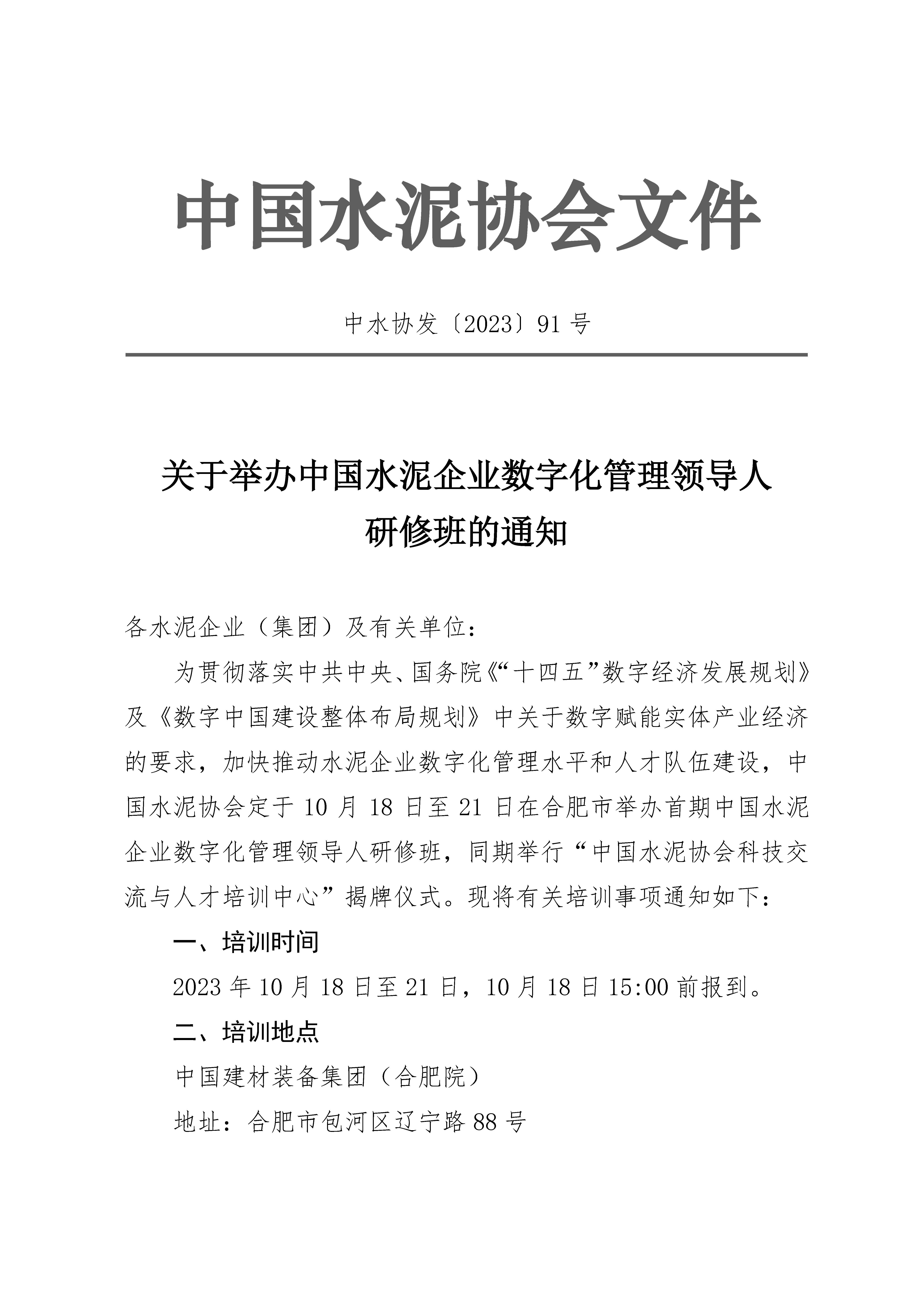 關於舉辦中國水泥企業數字化管理領導人研修班的通知-世界杯直播在线
