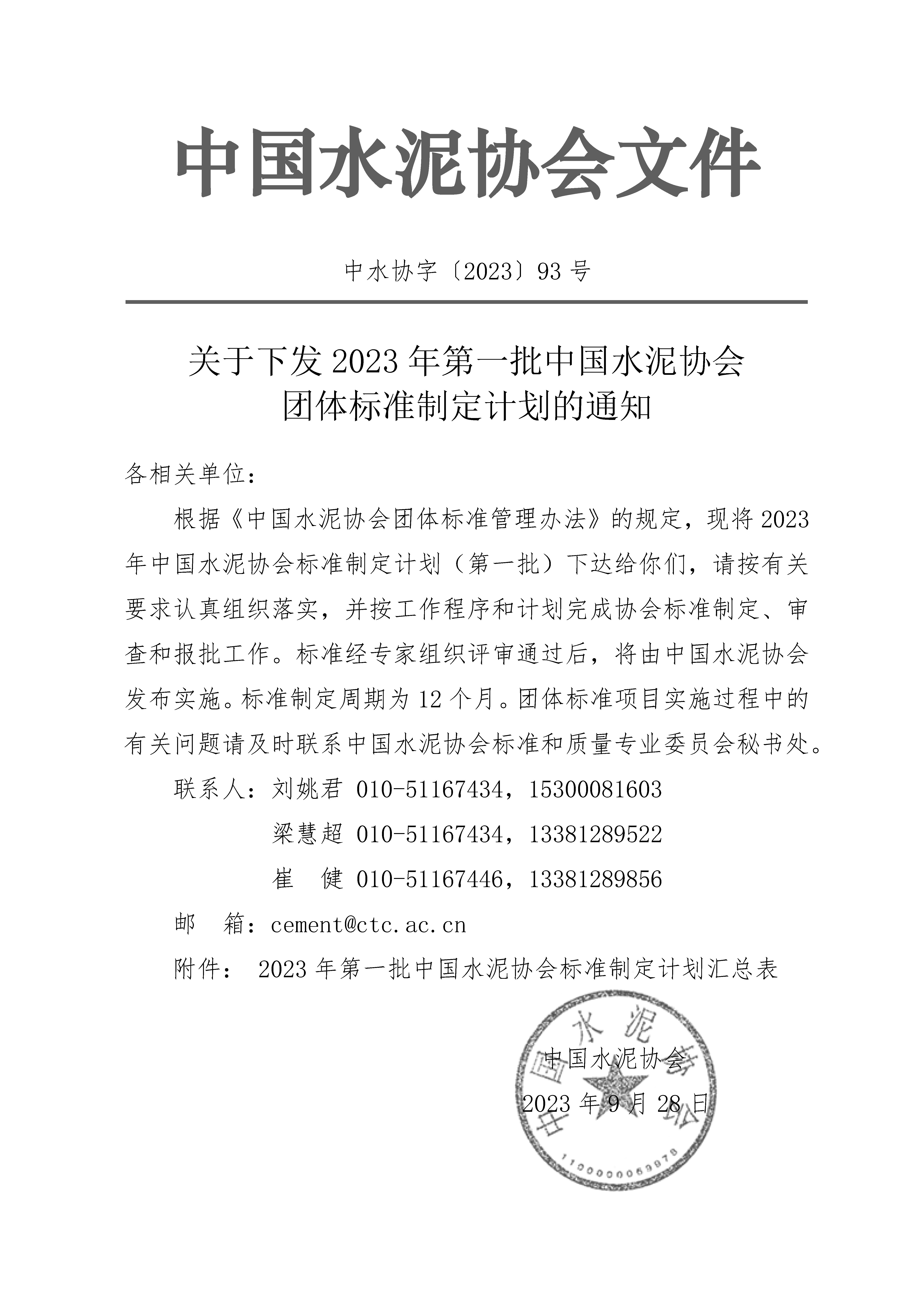 關於下發2023年第一批世界杯直播在线團體標準製定計劃的通知-世界杯直播在线