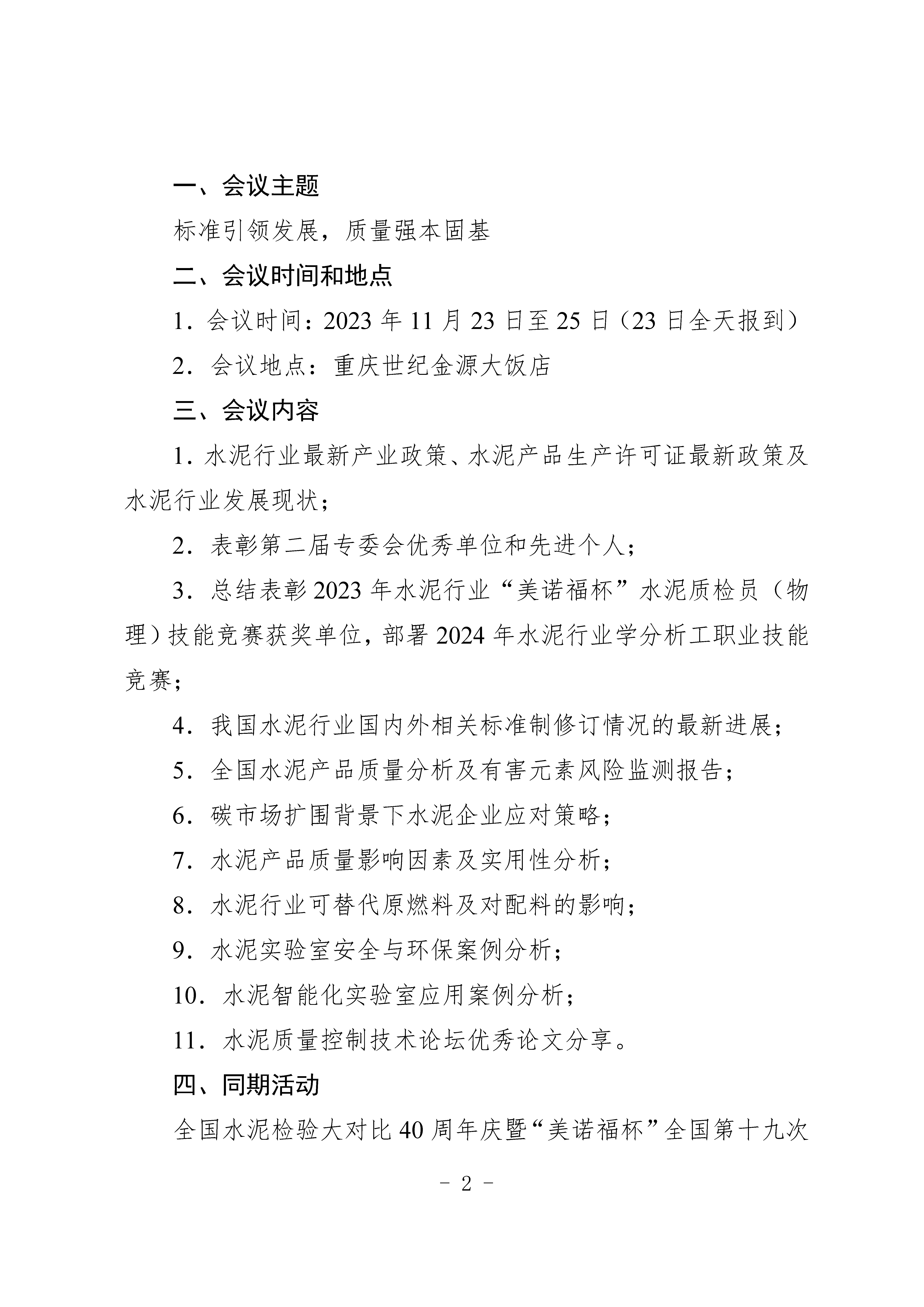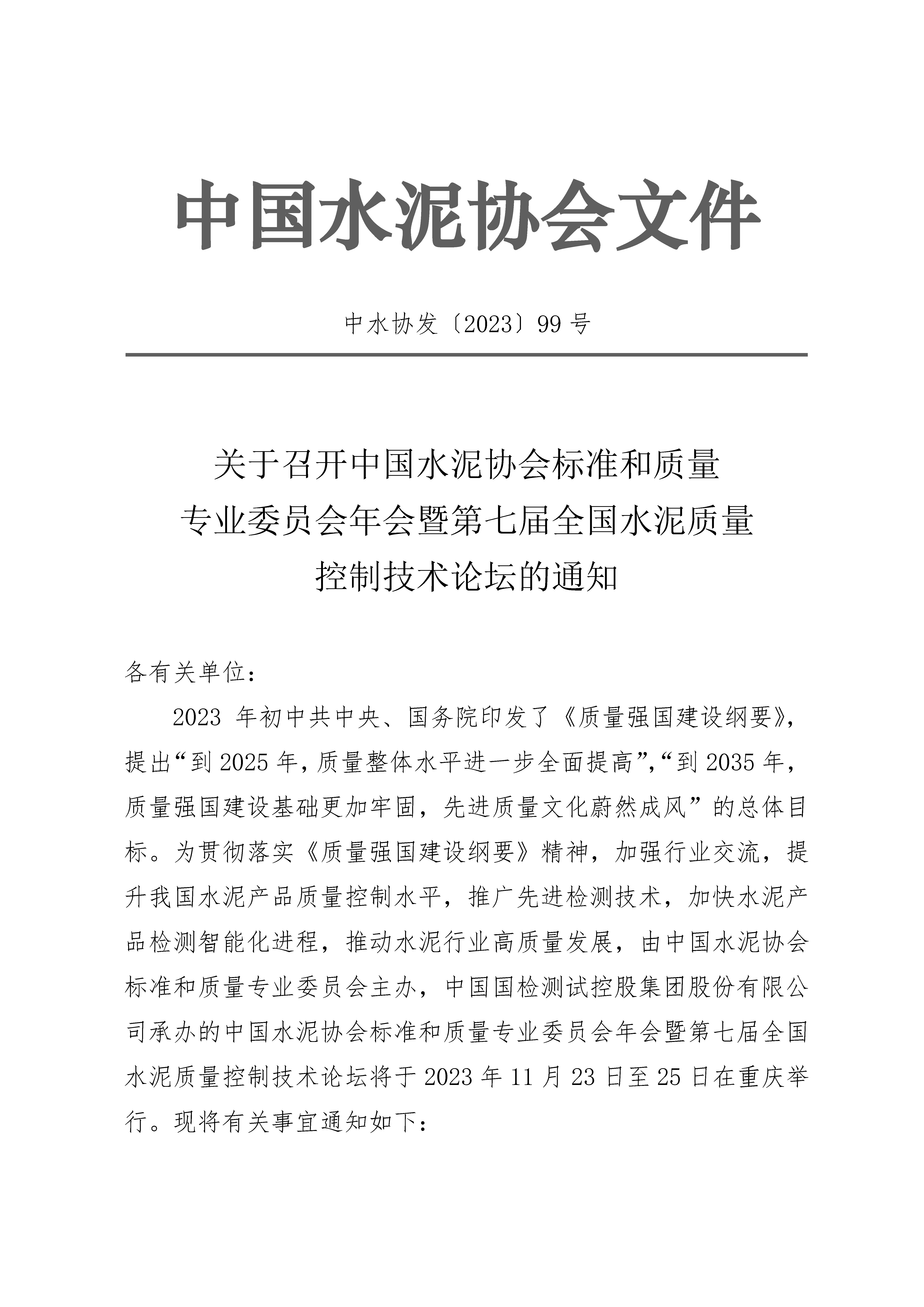 2023年關於召開世界杯直播在线標準和質量專業委員會年會暨第七屆全國水泥質量控製技術論壇的通知-世界杯直播在线