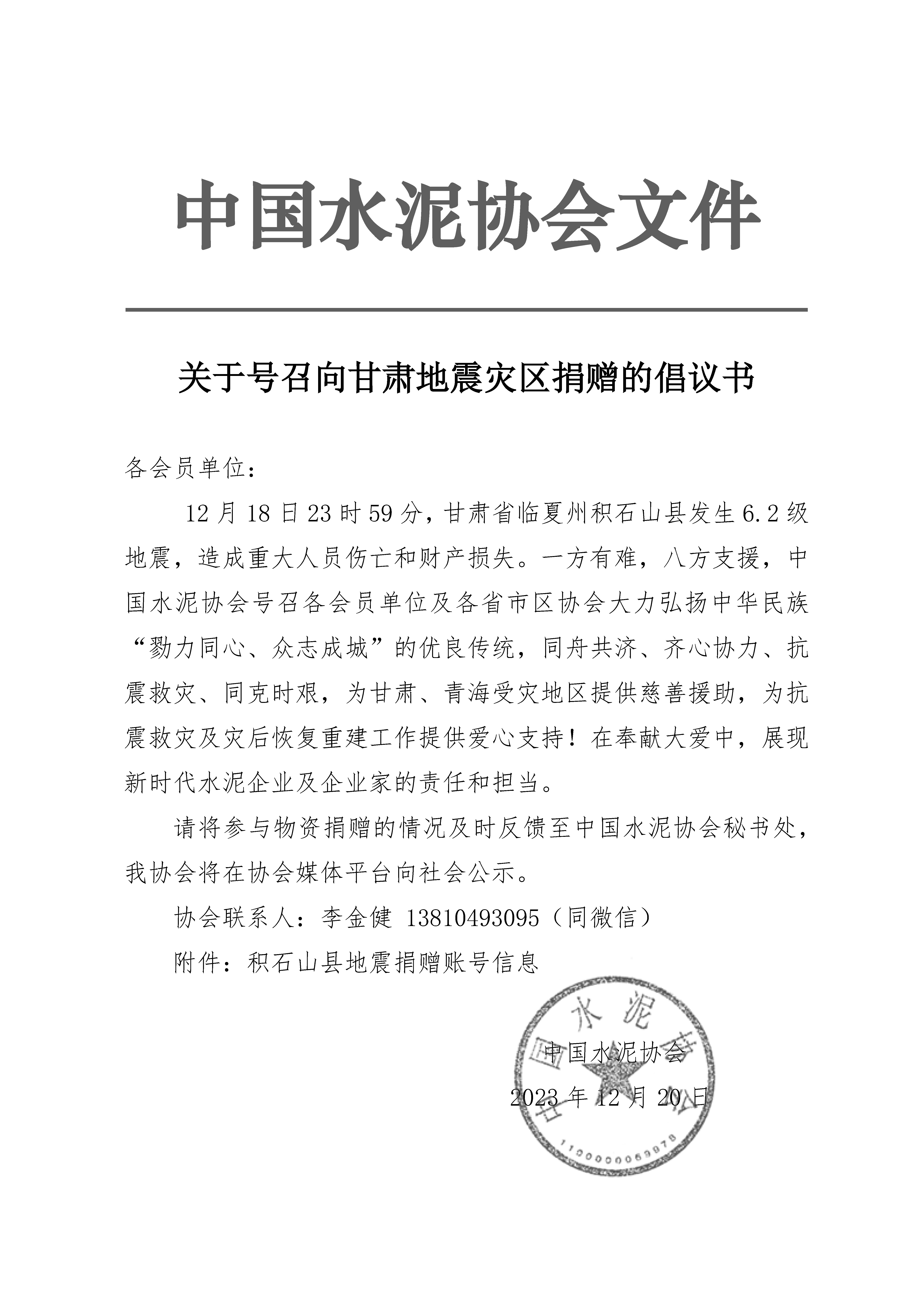 關於號召向甘肅地震災區捐贈的倡議書