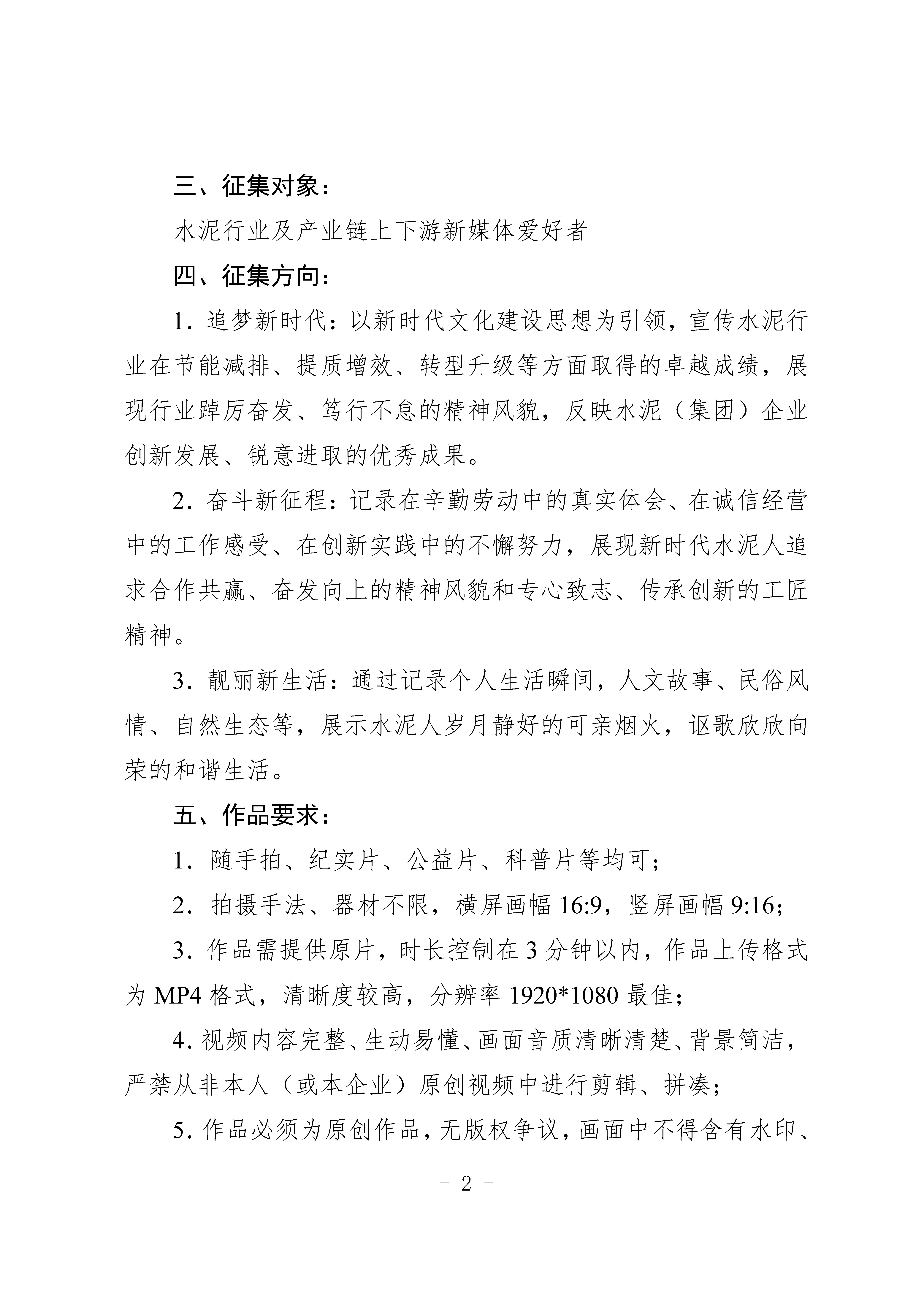關於征集展播水泥行業優秀短視頻作品的通知-世界杯直播在线