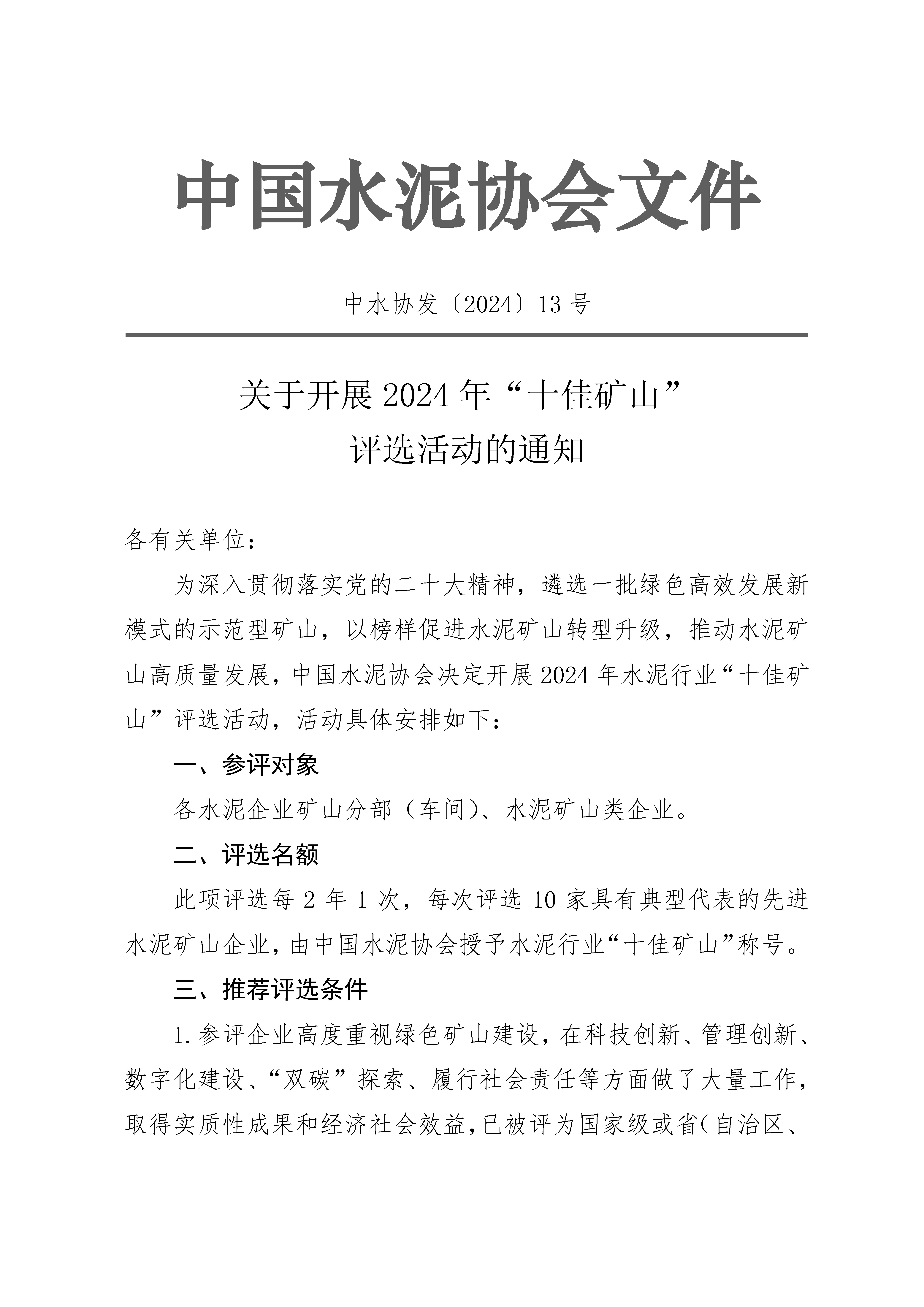 關於開展2024年“十佳礦山”評選活動的通知