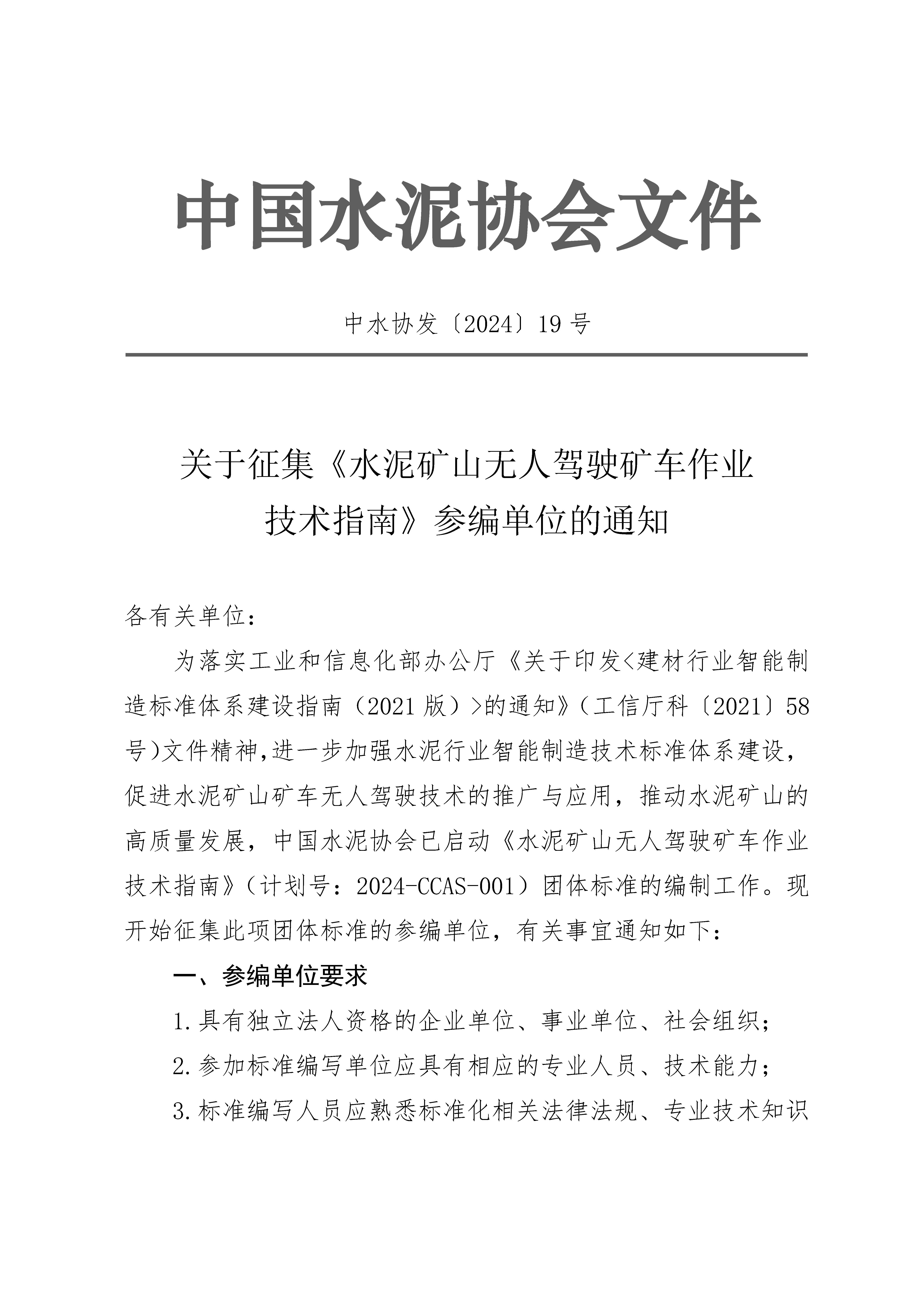關於征集《水泥礦山無人駕駛礦車作業技術指南》參編單位的通知-世界杯直播在线