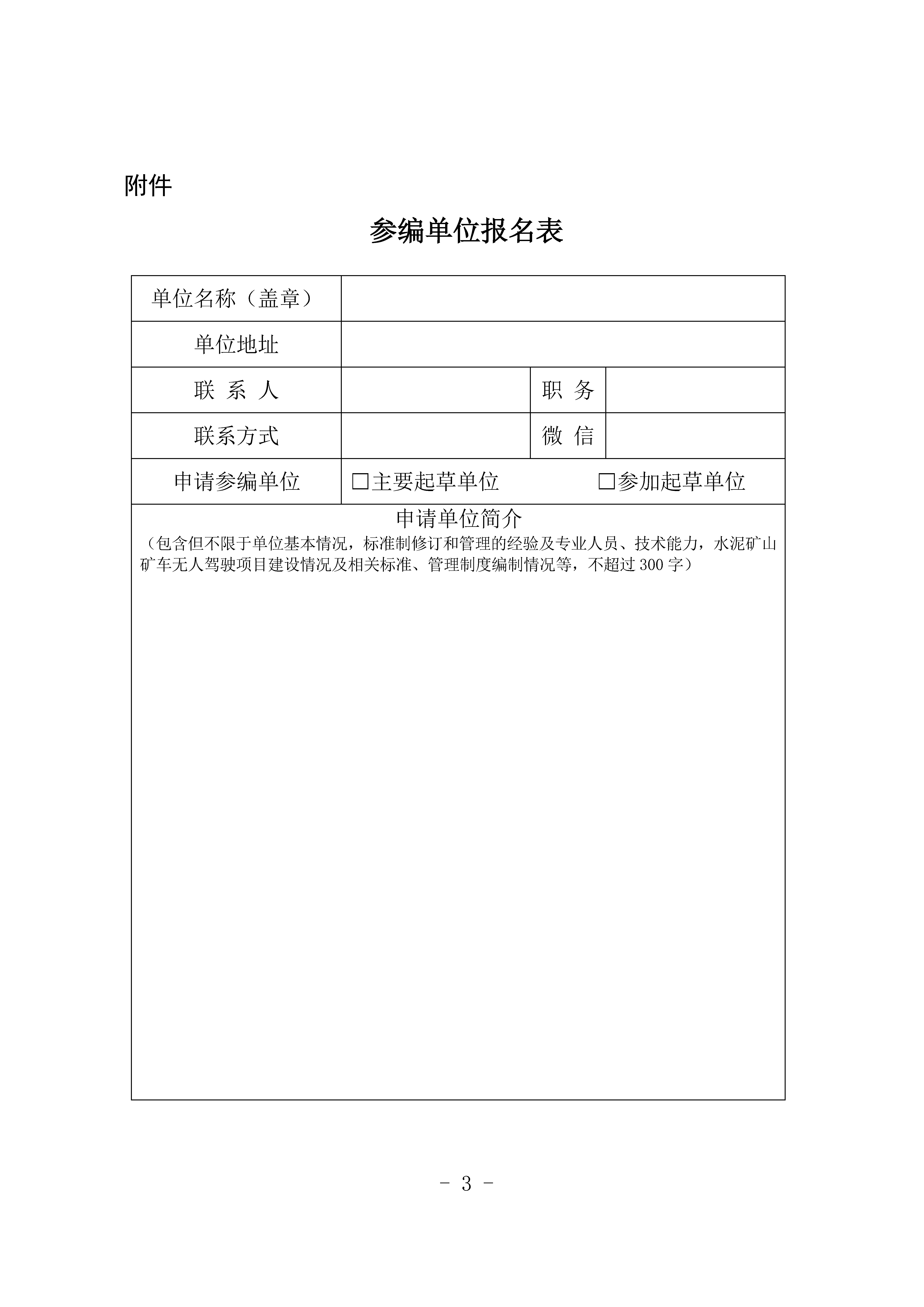 關於征集《水泥礦山無人駕駛礦車作業技術指南》參編單位的通知