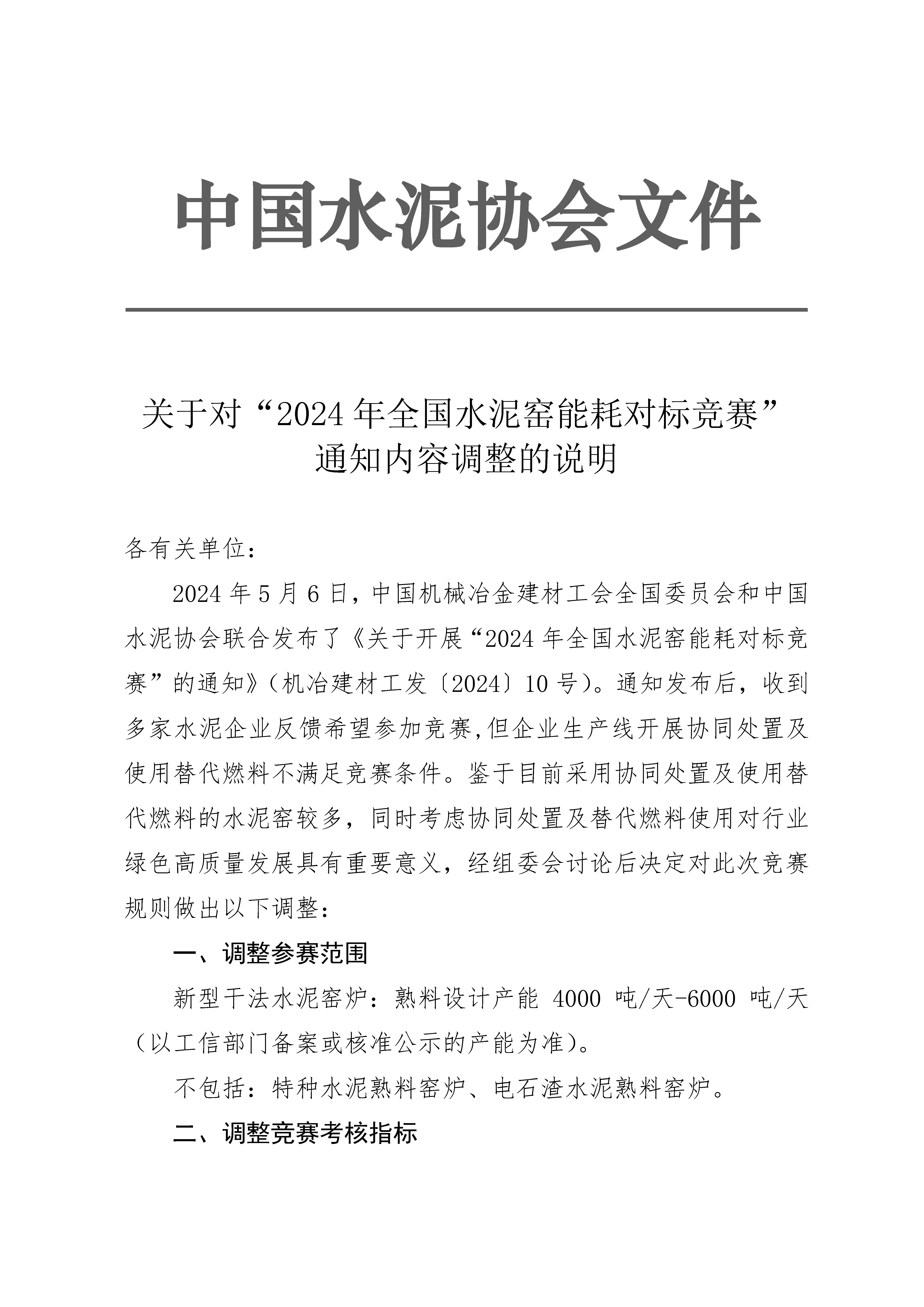 關於對“2024年全國水泥窯能耗對標競賽”通知內容調整的說明