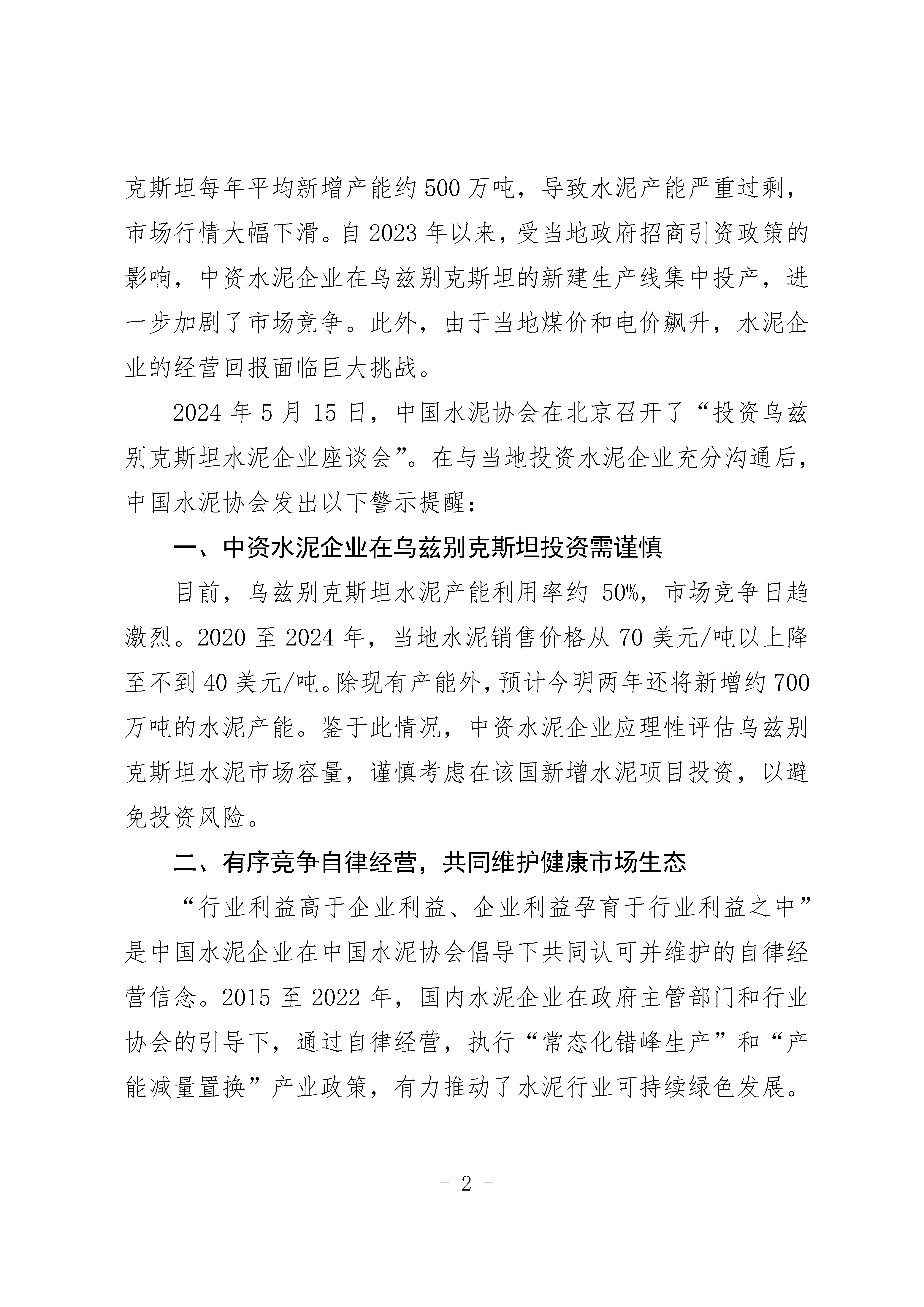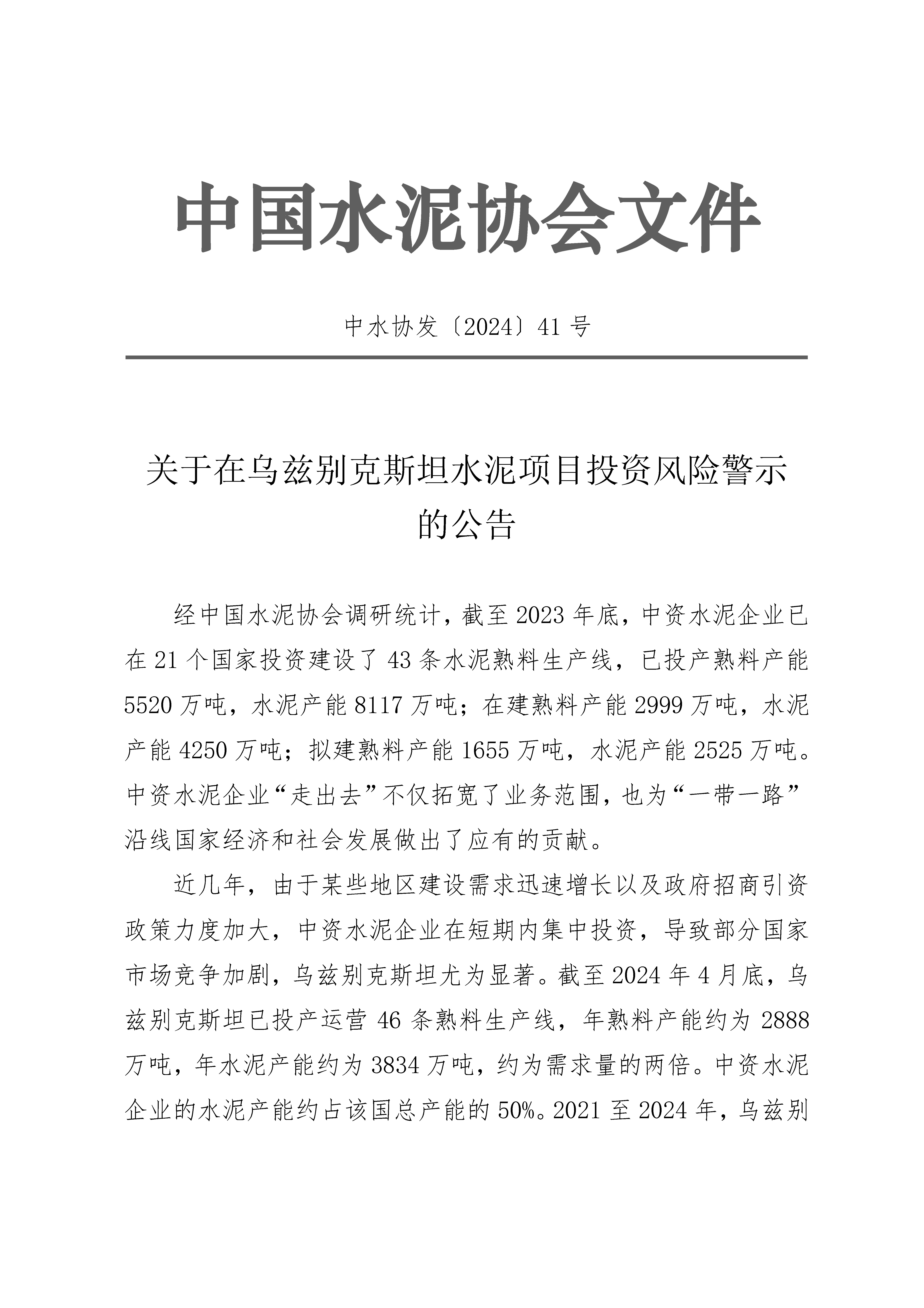 關於在烏茲別克斯坦水泥項目投資風險警示的公告-世界杯直播在线