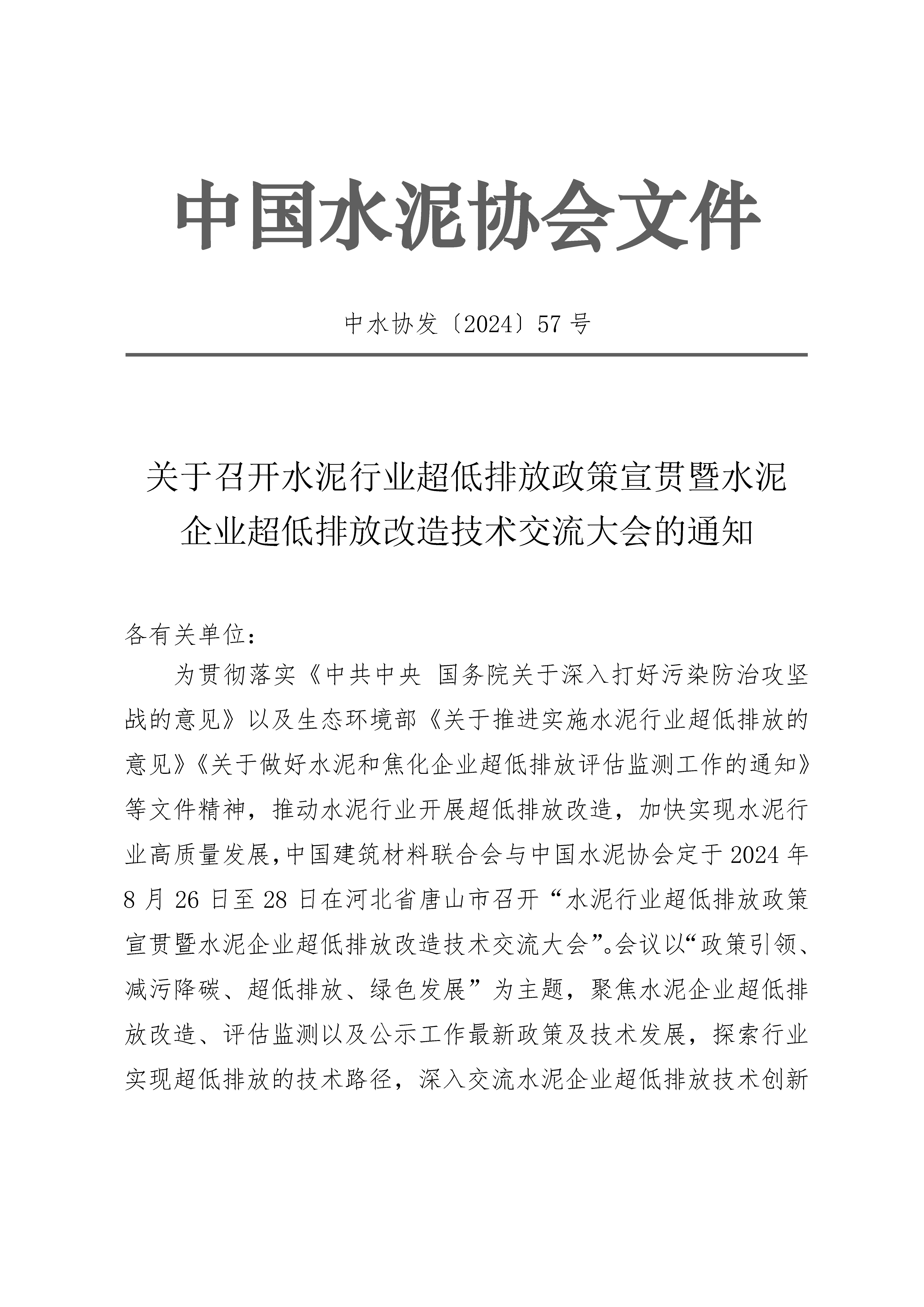 關於召開水泥行業超低排放政策宣貫暨水泥企業超低排放改造技術交流大會的通知