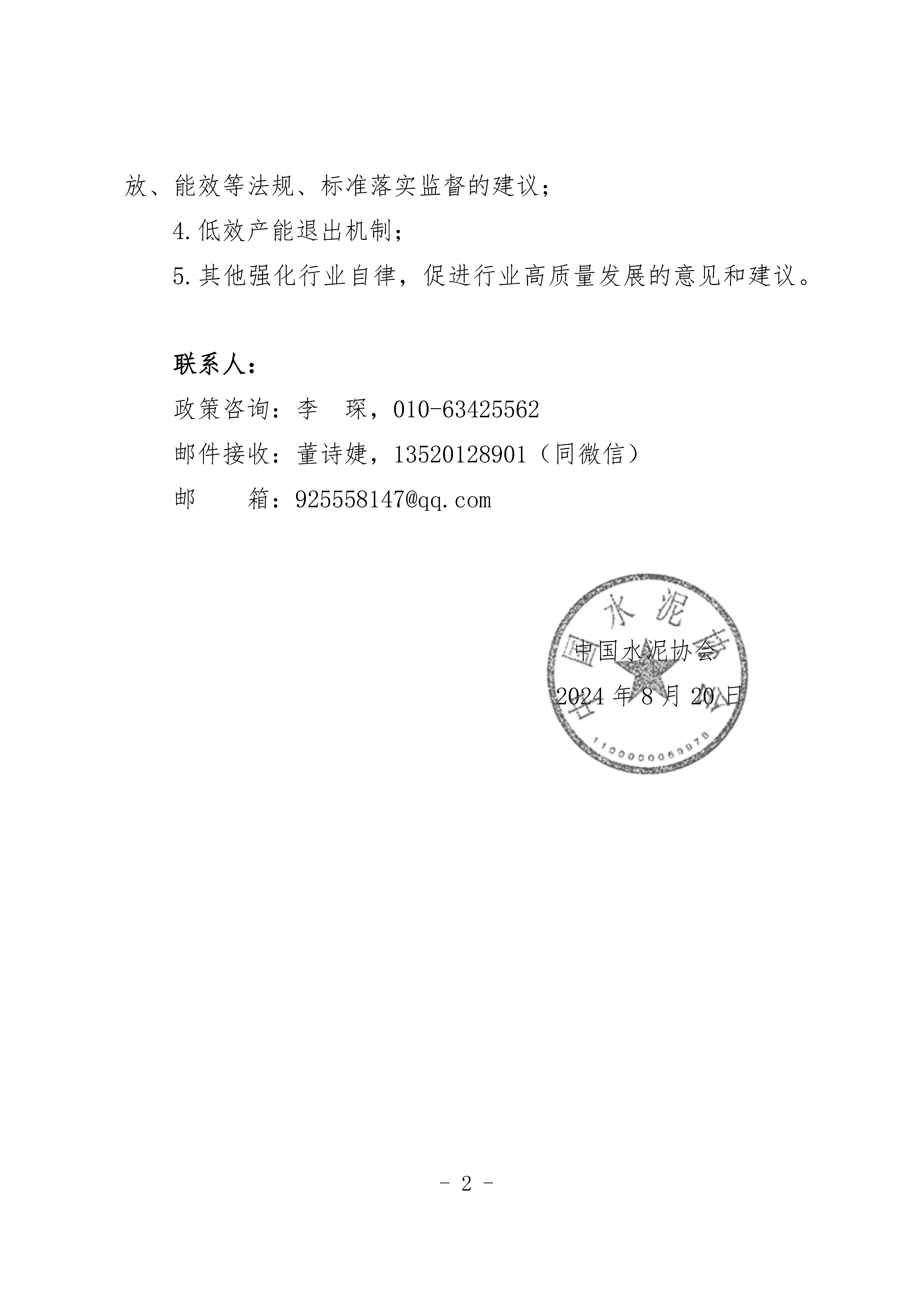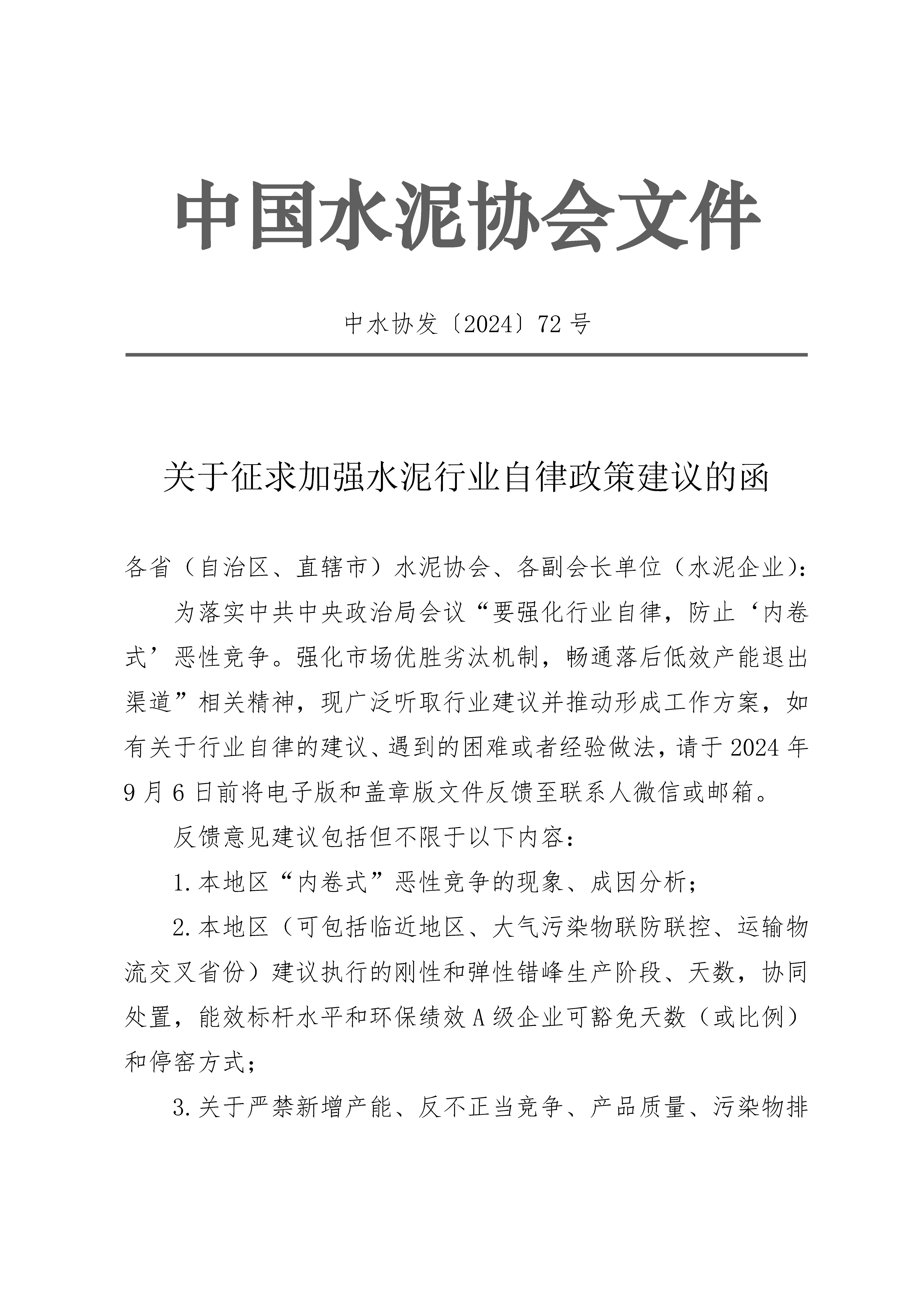 關於征求加強水泥行業自律政策建議的函