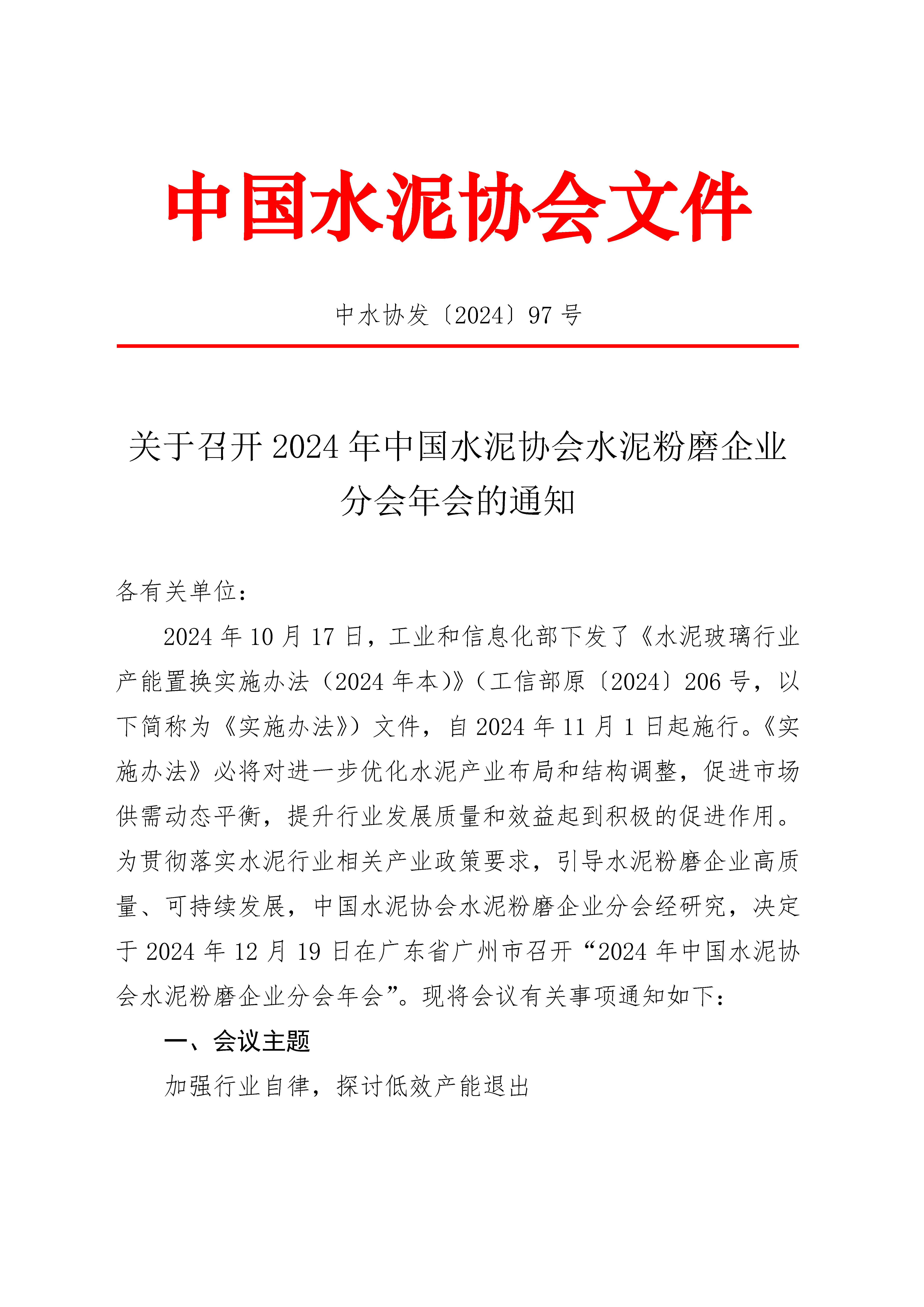 關於召開2024年世界杯直播在线水泥粉磨企業分會年會的通知-世界杯直播在线