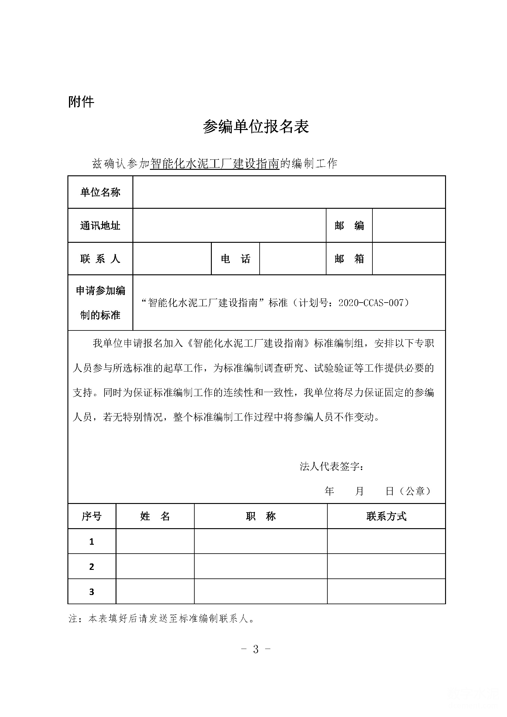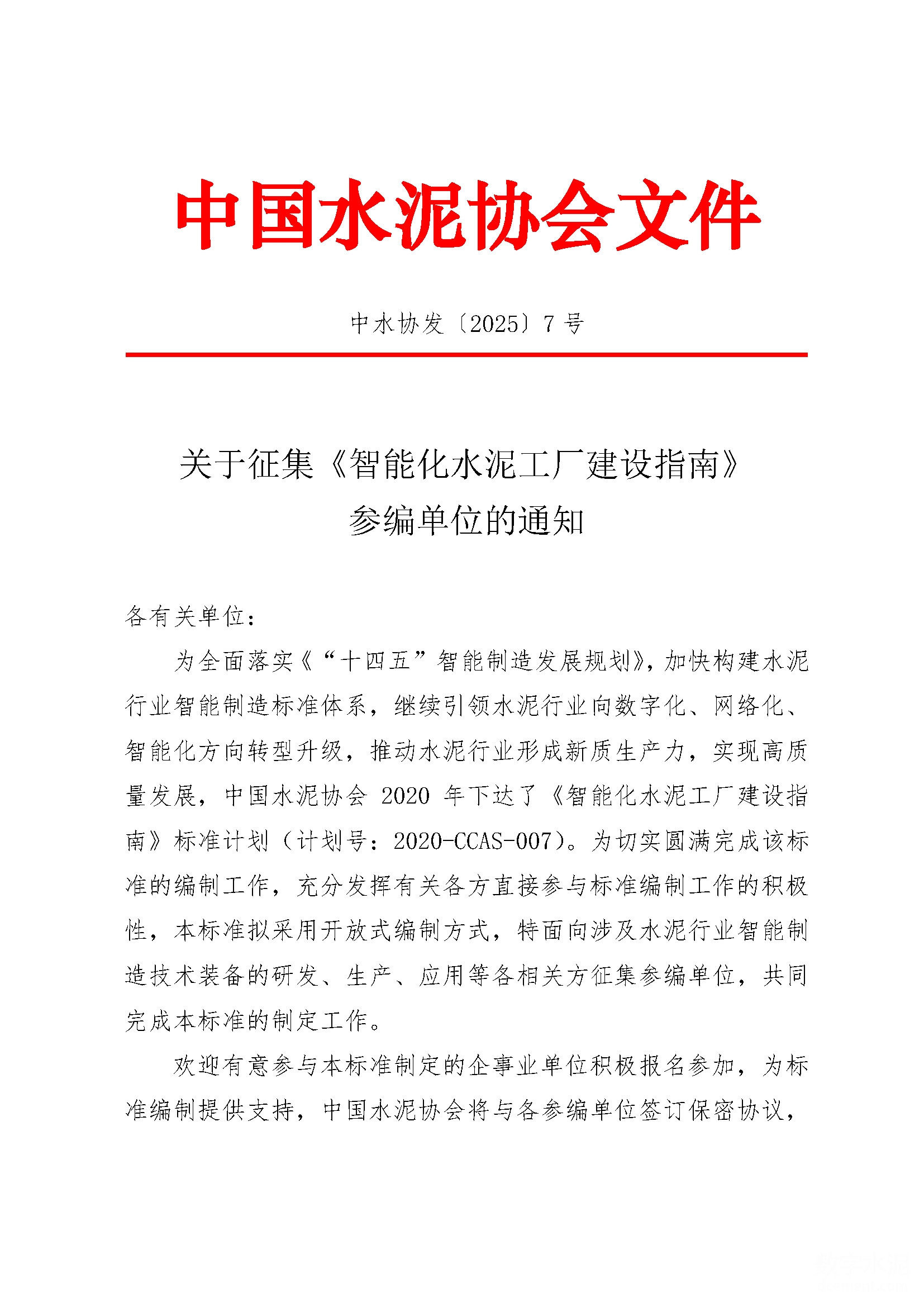 關於征集《智能化水泥工廠建設指南》參編單位的通知