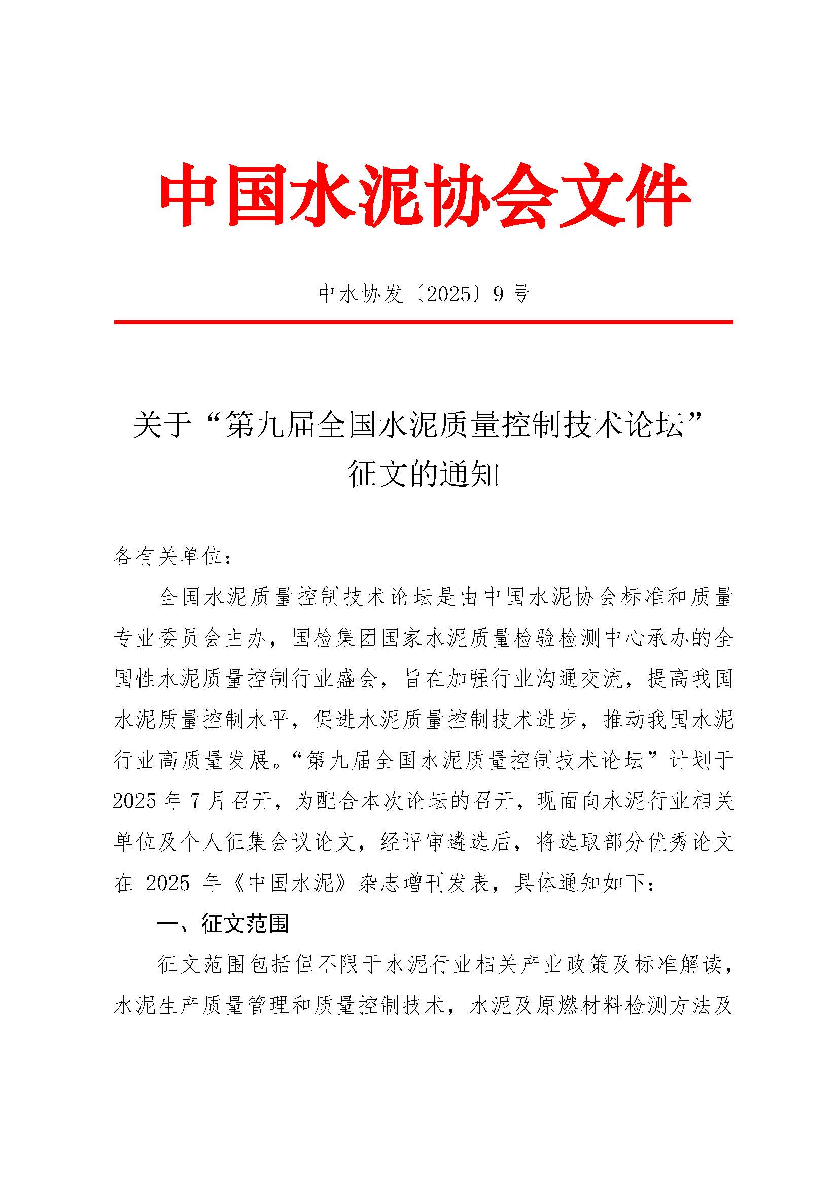 關於“第九屆全國水泥質量控製技術論壇”征文的通知-世界杯直播在线
