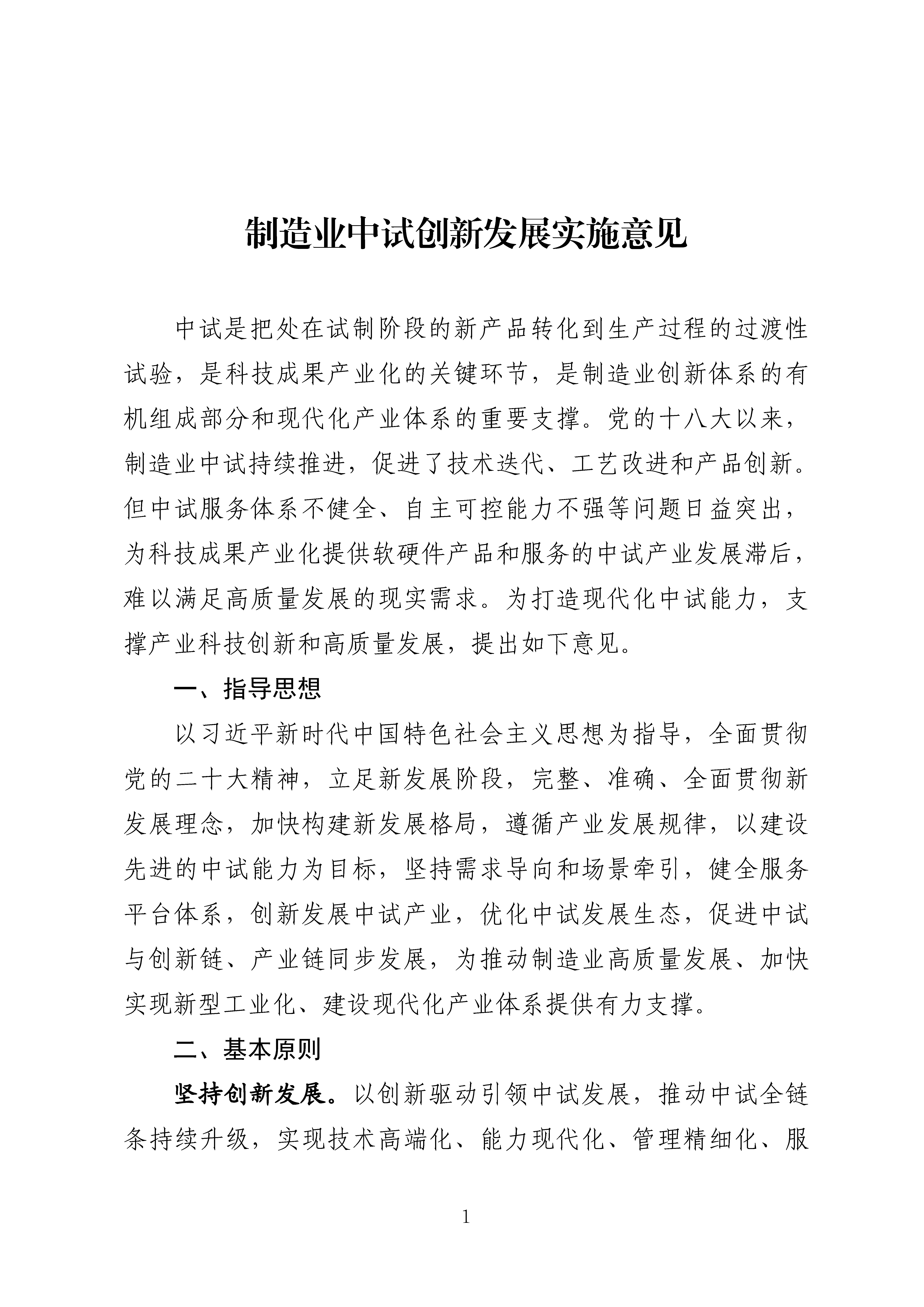 製造業中試創新發展實施意見